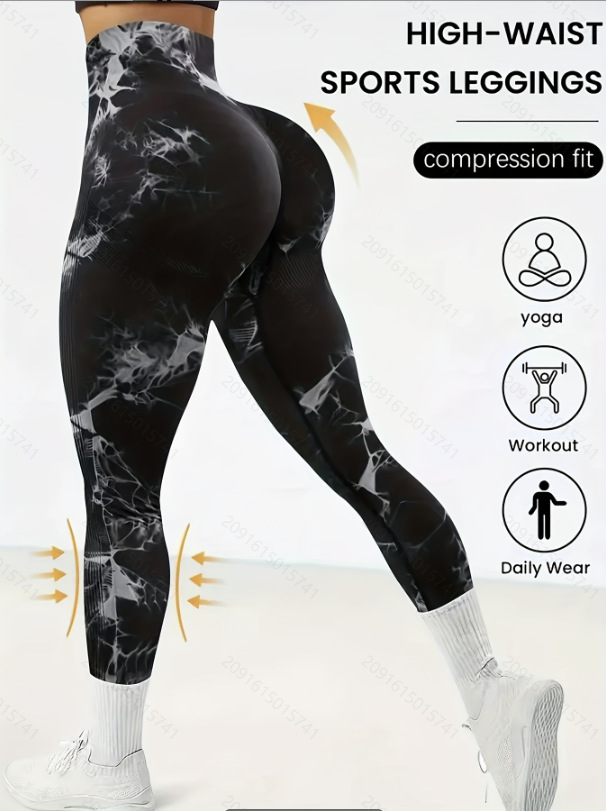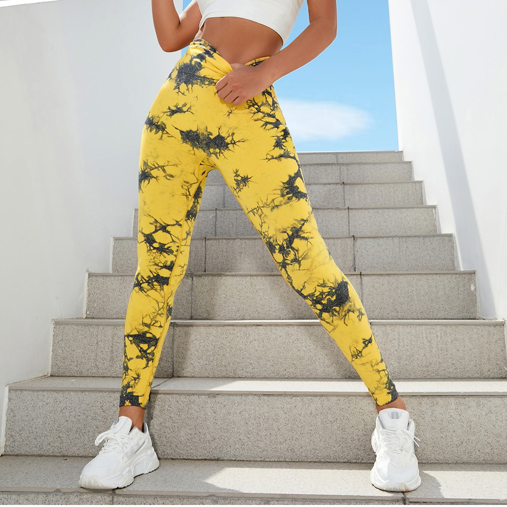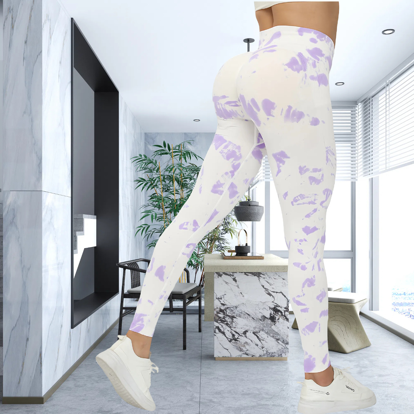 유럽과 미국 국경 간 원활한 복숭아 엉덩이 요가 바지 넥타이 염색 타이트한 스포츠 바지 달리기 피트니스 9 바지 자리