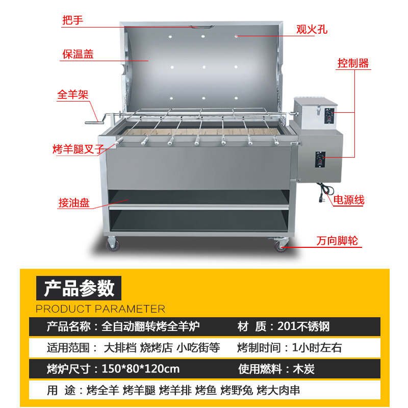 통양구이용 스테인리스 숯불 무연 그릴, 양다리구이, 토끼구이, 양갈비구이, 닭고기구이, 올인원 그릴로, 바베큐 그릴