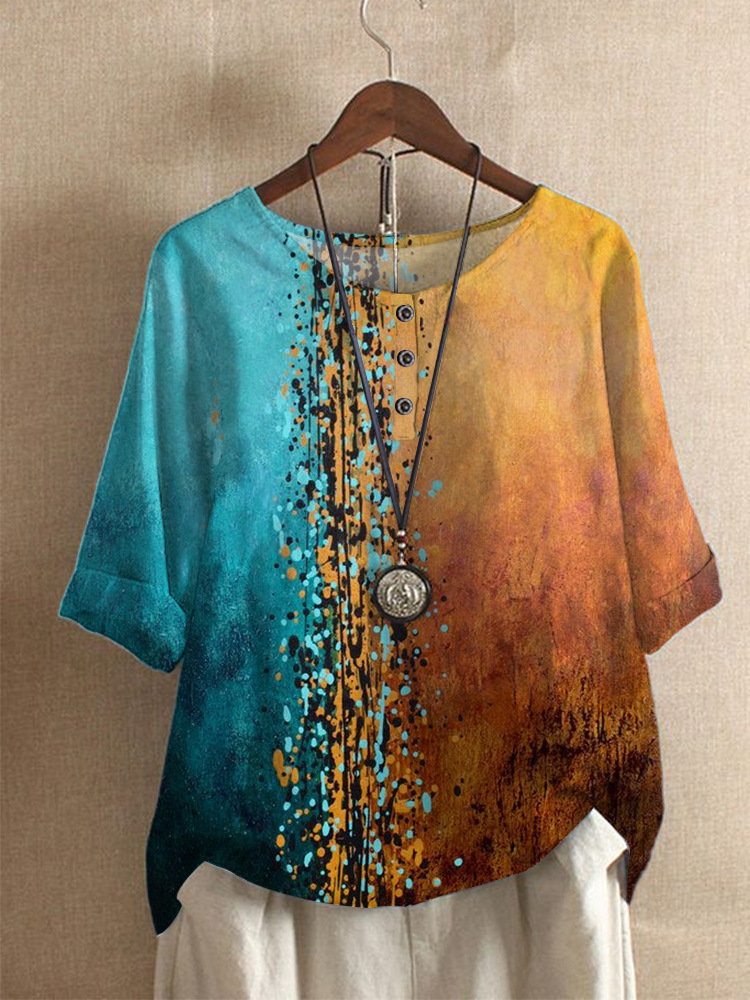 유럽과 미국 크로스 보더 아마존 소원 여성의 느슨한 패션 느슨한 디지털 인쇄 캐주얼 탑