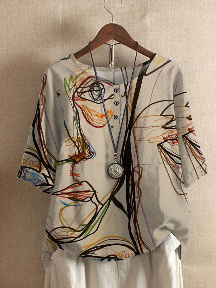 유럽과 미국 크로스 보더 아마존 소원 여성의 느슨한 패션 느슨한 디지털 인쇄 캐주얼 탑스토어 가기