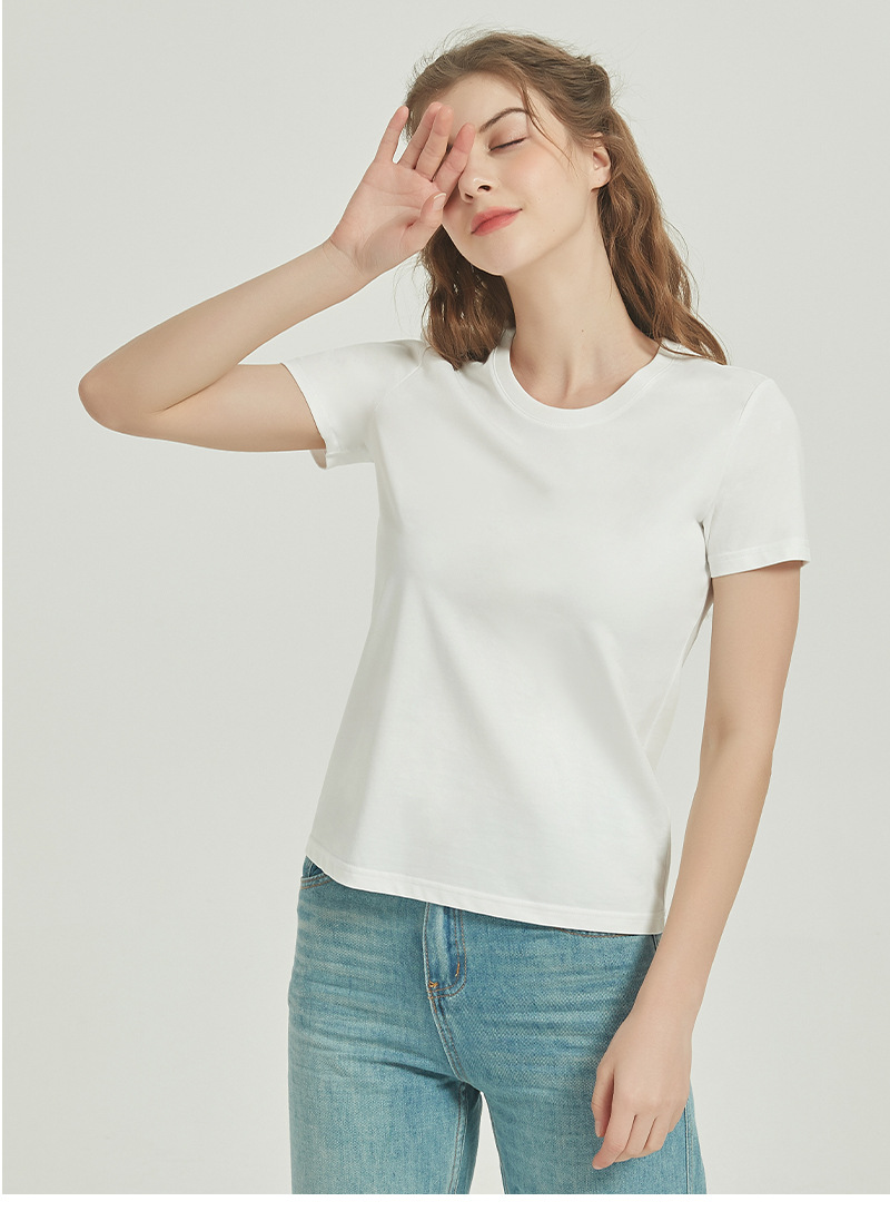 2026년 신상 고급 면 티셔츠 여성용 반팔 무지 라운드넥 풀오버 다림질 필요 없는 신장면 솔로나 티셔츠 여성용스토어 가기