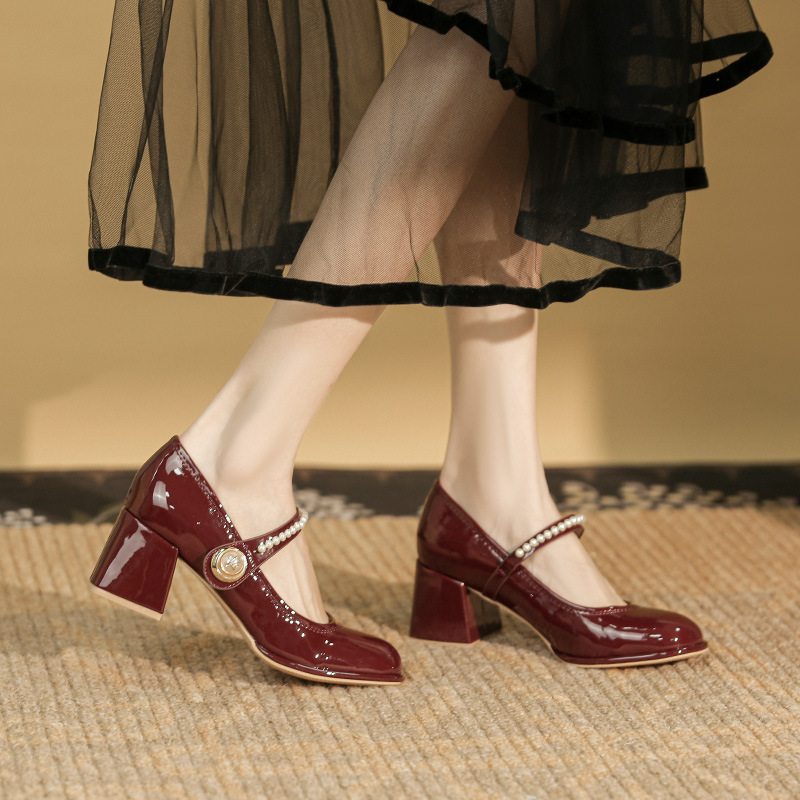 공장 재고 메리제인 얕은 굽 다용도 출근 예식 약혼 신부 구두 하이힐 통굽 여성용 한국 스타일스토어 가기