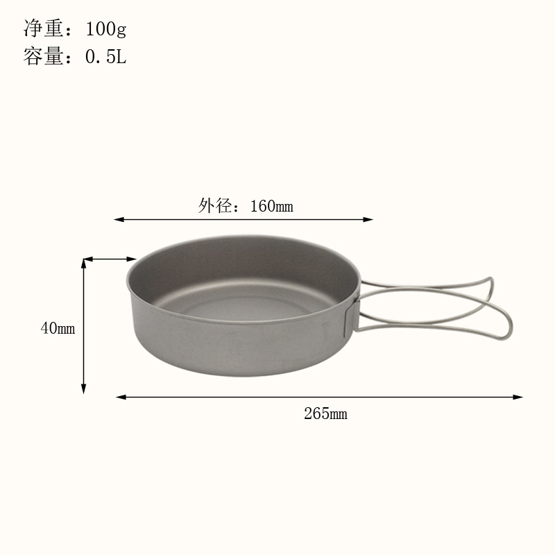 야외 순수 티타늄 프라이팬 0.5L 캠핑 식기 야외 주방 용품 조리기구 캠핑 휴대용 프라이팬 과일 접시 가정용스토어 가기