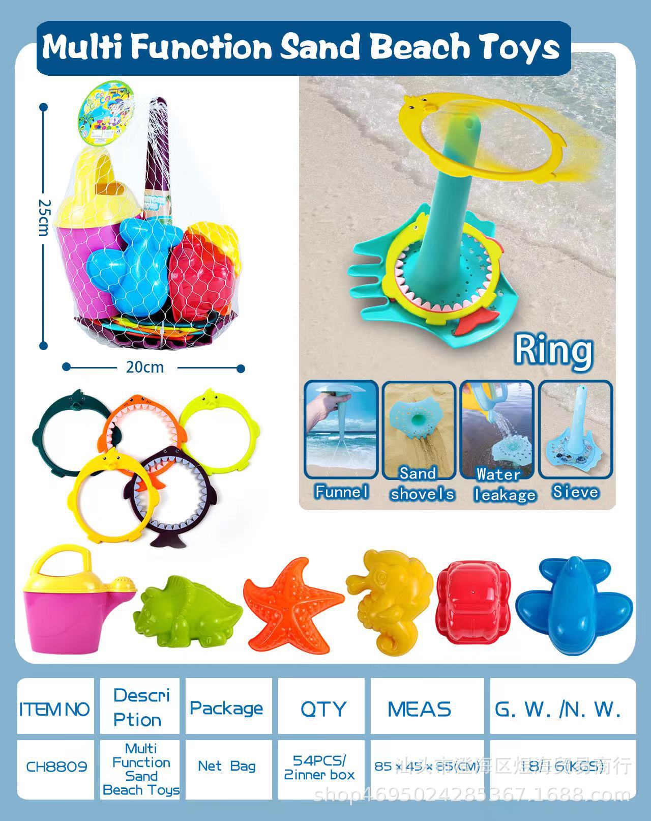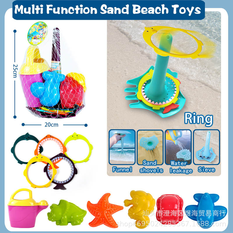 어린이 다기능 해변 장난감 모래 놀이 세트 모래 파기 도구 슬리브 링 모래 삽 물 누출 아기 해변 물 놀이스토어 가기