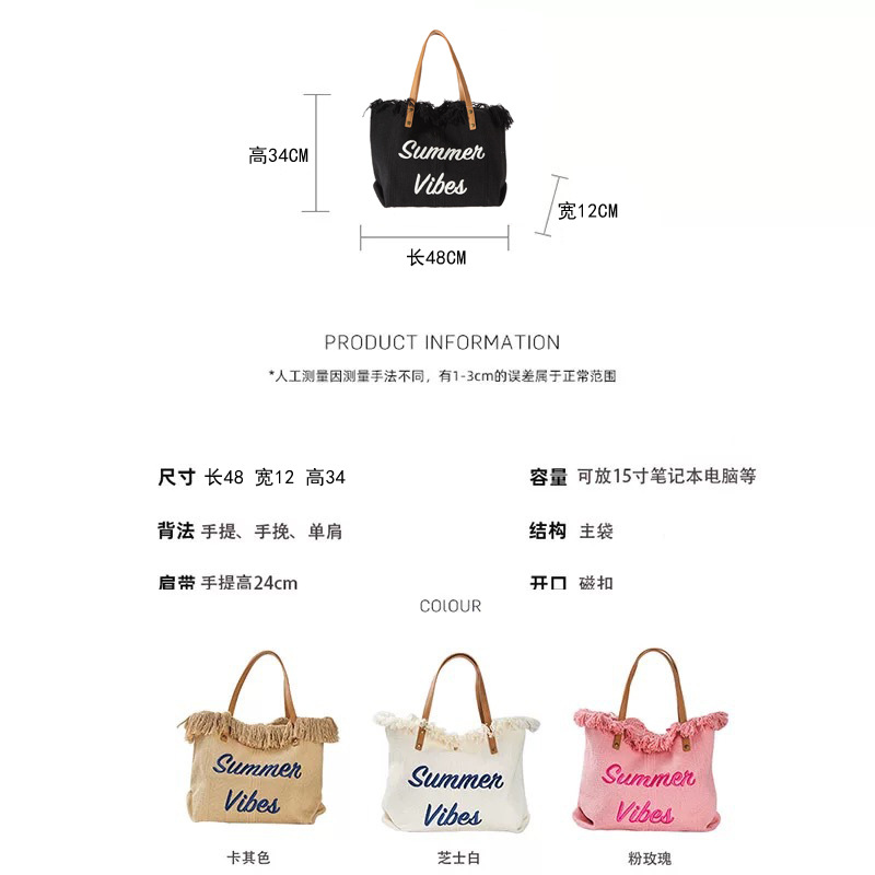 가방 대용량 캔버스 가방 자수 편지 토트 백 핸드백 여성용 가방 짠 비치 백 숄더백 가방스토어 가기
