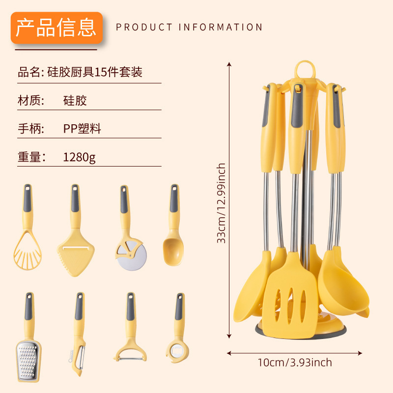 실리콘 주방 용품 15 개 세트 다기능 소형 주방 용품 멜론 대패 강판 수프 스푼 요리 도구 냄비 주걱 세트