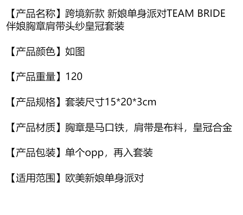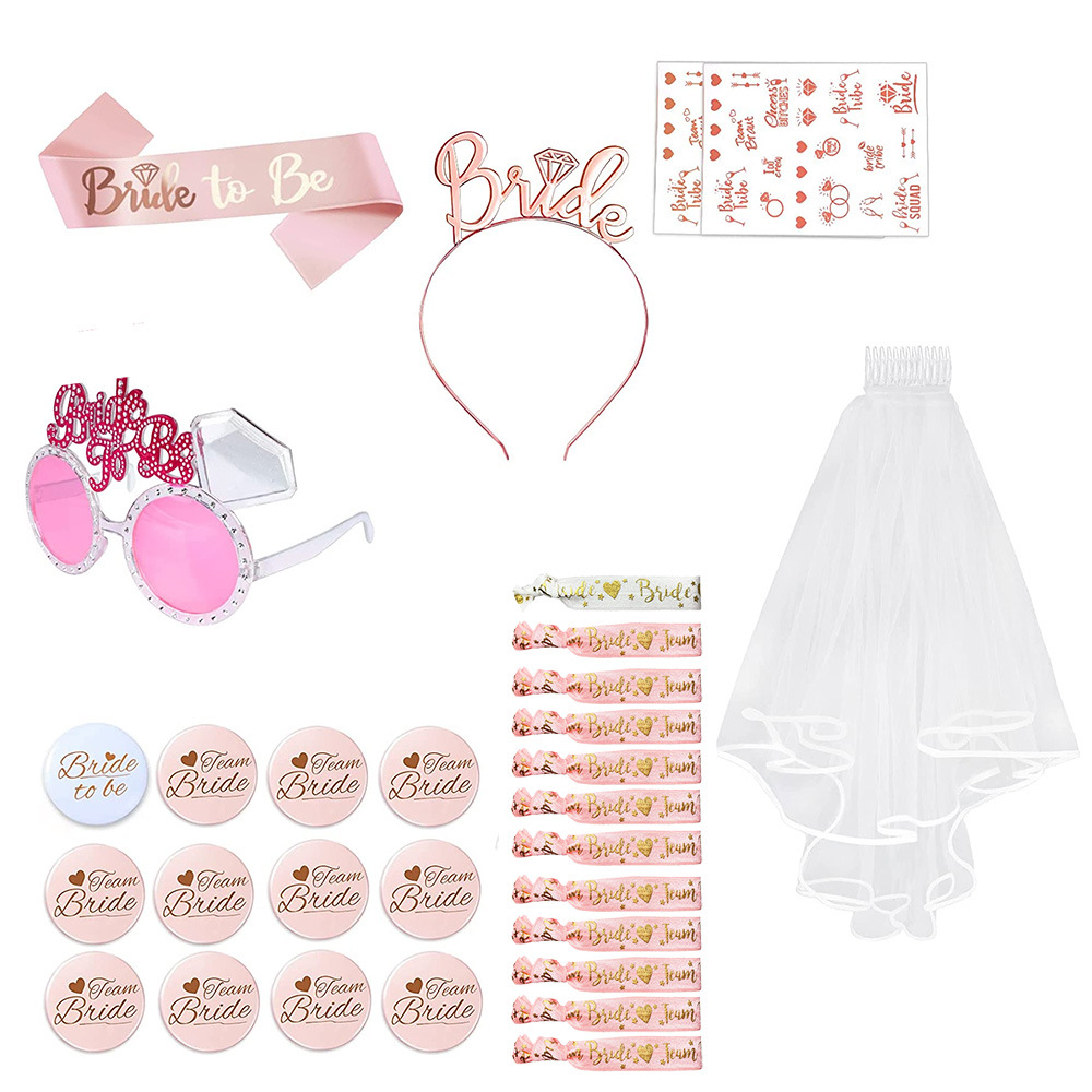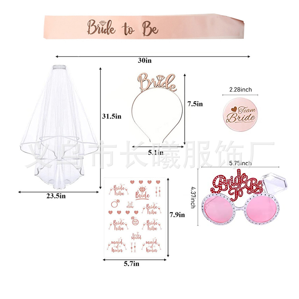 크로스 국경 새로운 신부 총각 파티 팀 신부 들러리 배지 어깨 끈 베일 크라운 세트