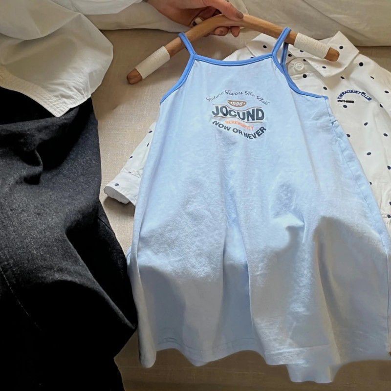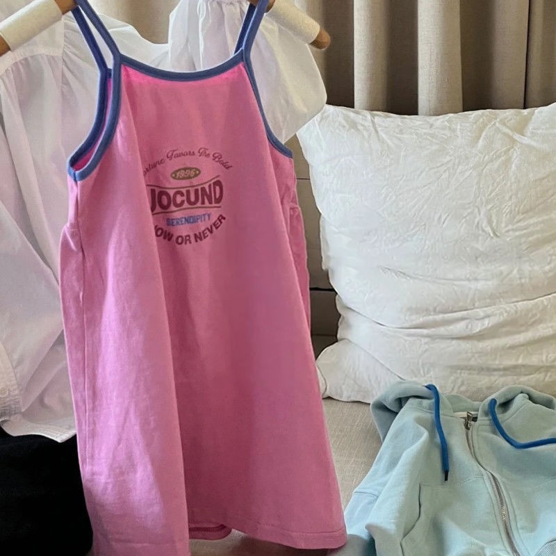 여름 슬립 스커트 소녀의 슈퍼 외국인 스타일 원피스 어린이 한국식 편지 인쇄 유행 귀여운 조끼 스커트 0026스토어 가기