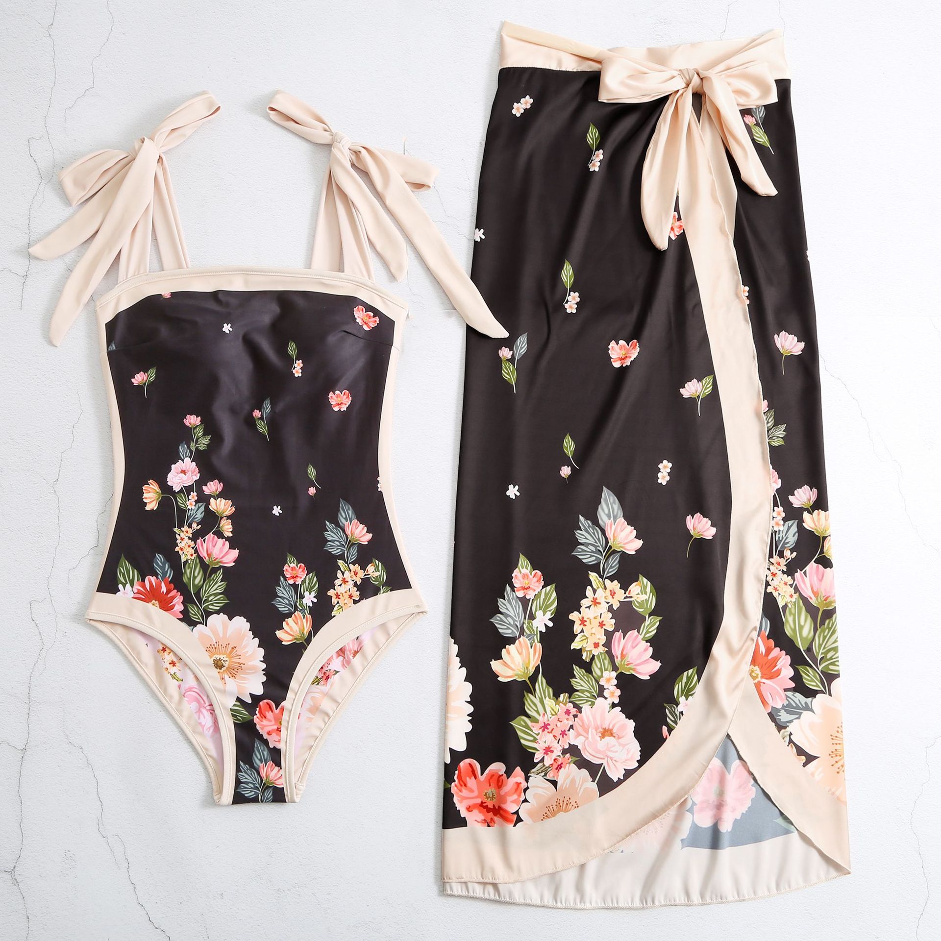 2023 새로운 양면 스트랩리스 대외 무역 원피스 수영복 세트 치마 세트 비치 스커트 투피스 수영복스토어 가기