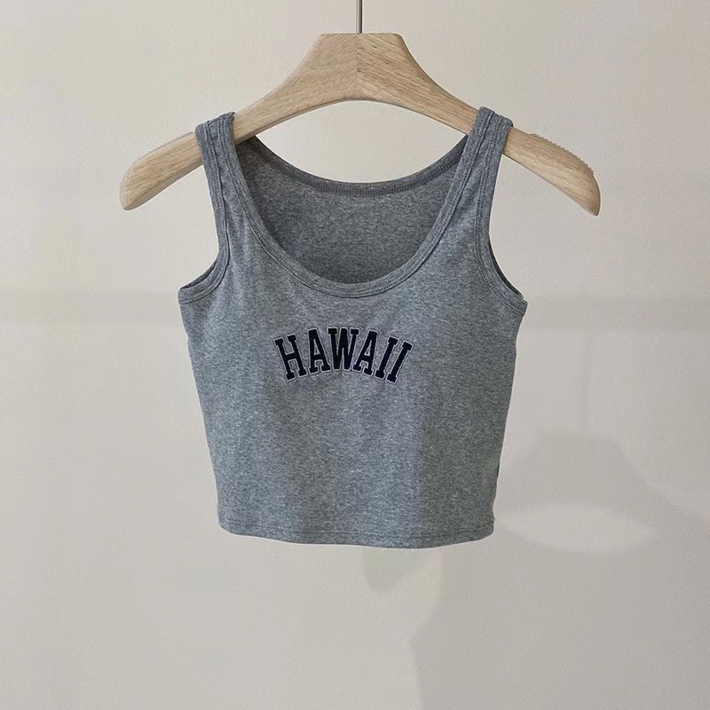 크로스 보더 소스 아름다운 백 랩 가슴 패드 편지 자수 내부 백킹 아우터 슬림 핏 배꼽 캐미솔 여성스토어 가기