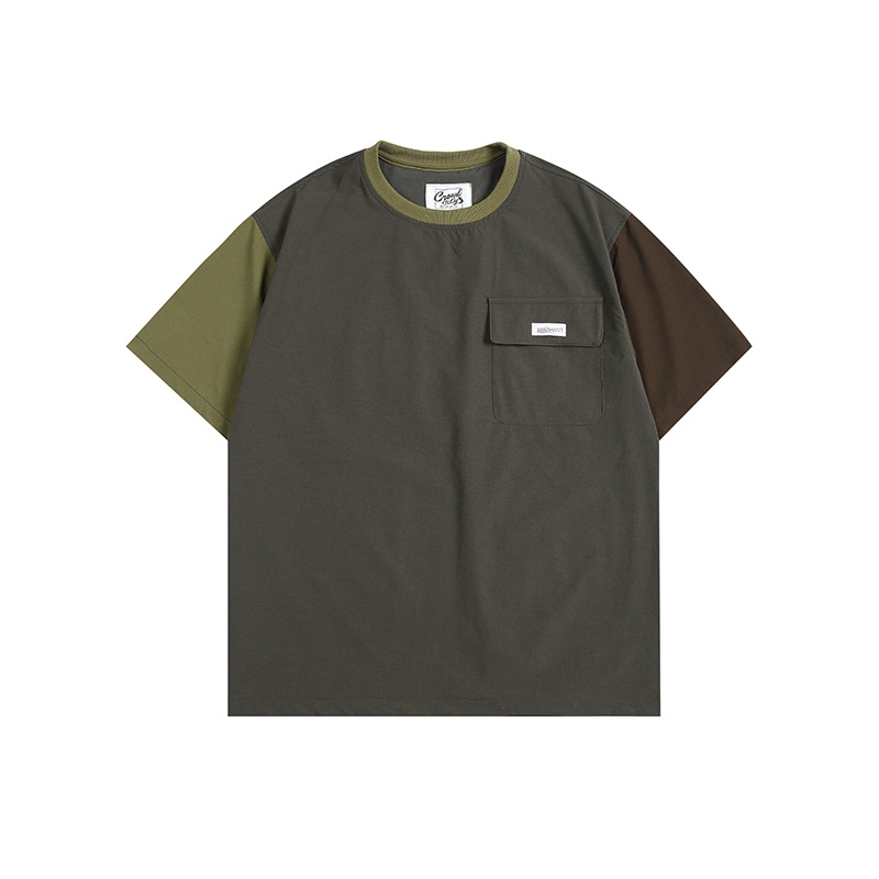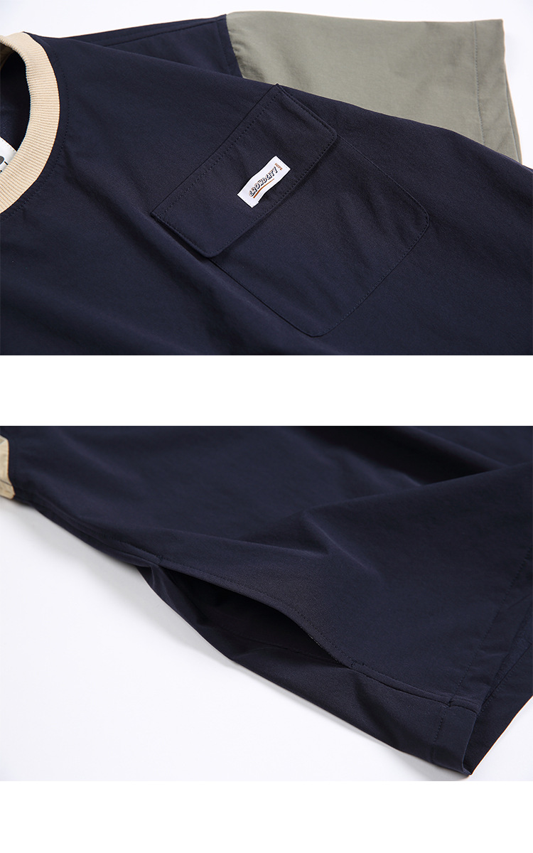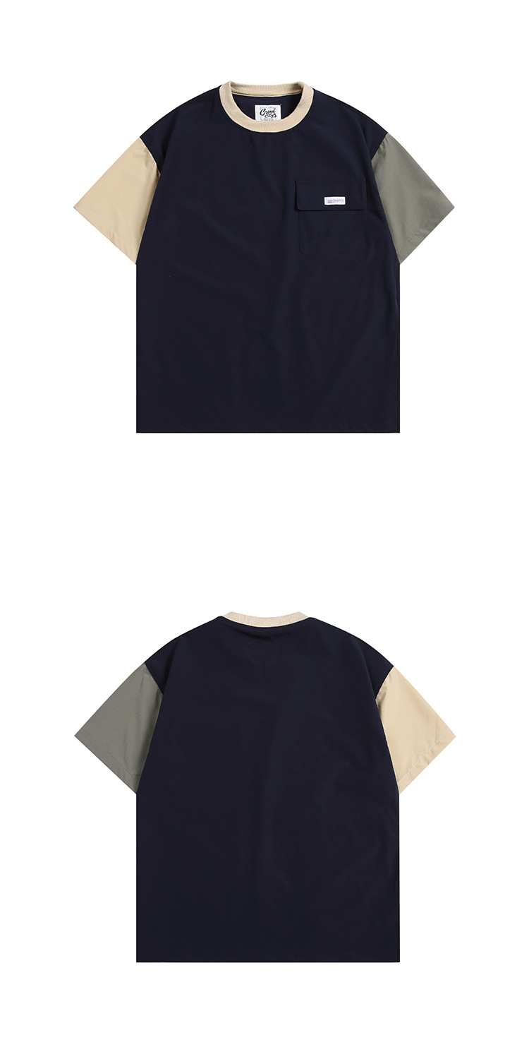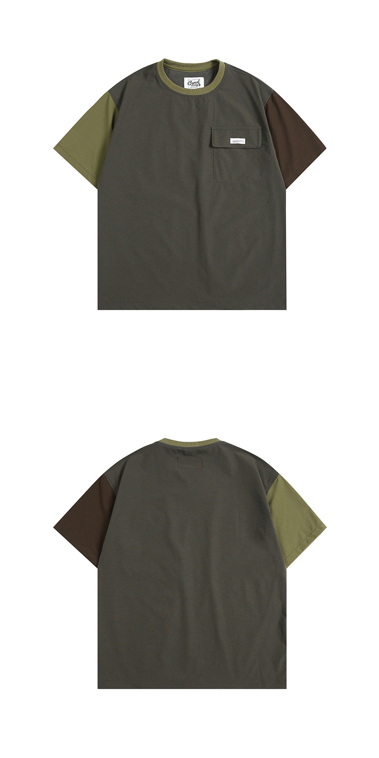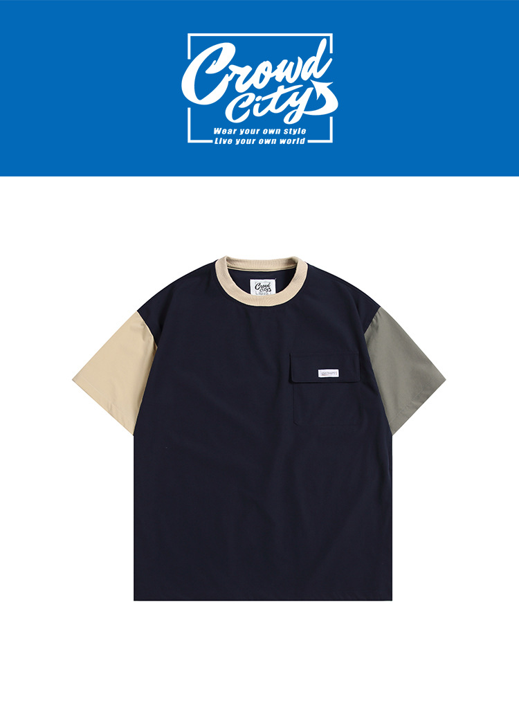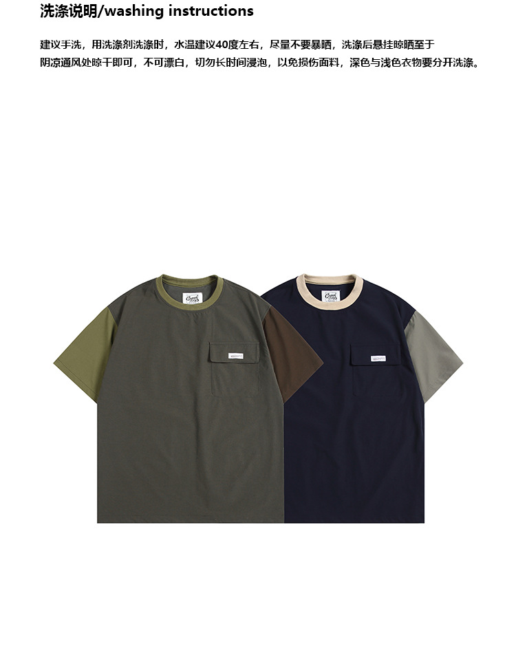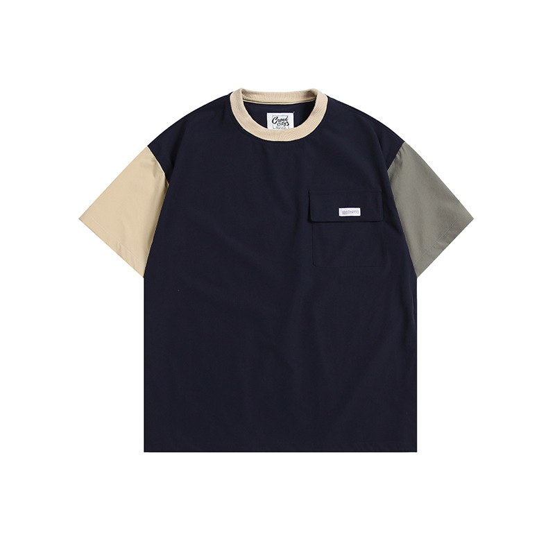 베이지에 남성복 아메리칸 스타일 패션 브랜드 2025 여름 신상 컬러 블록 배색 등산복 반팔 티셔츠 남성 반팔 티스토어 가기