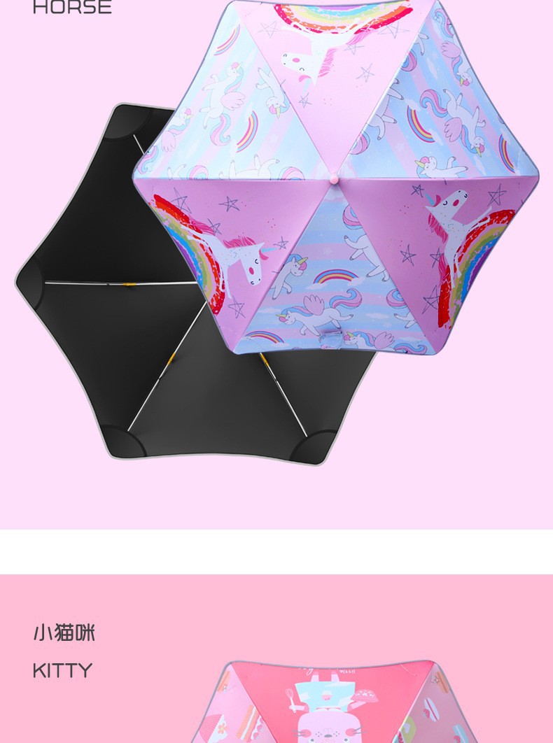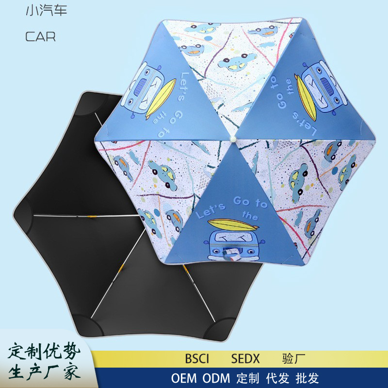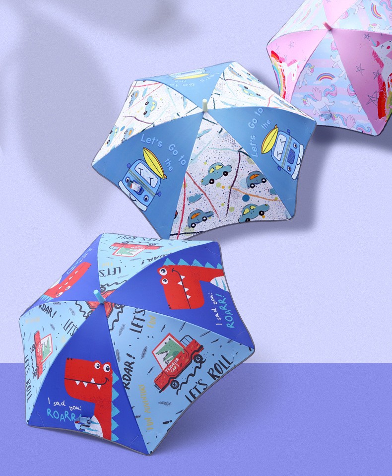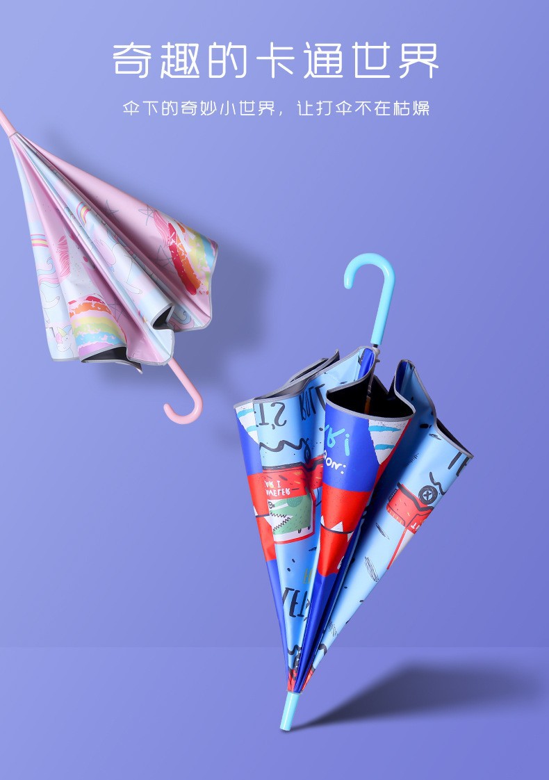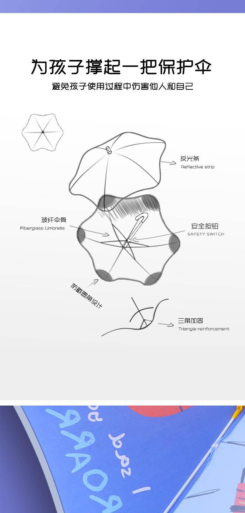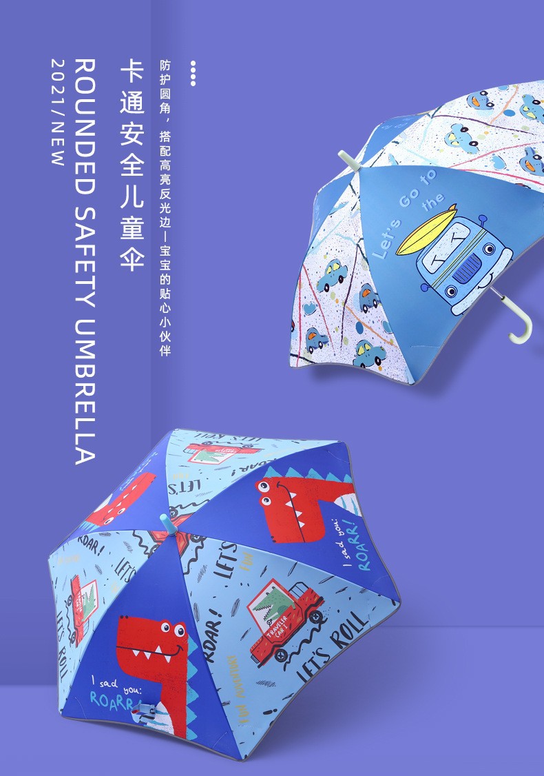 어린이 우산 만화 직선 둥근 모서리 비닐 우산 안티 스터치 안전 반사 스트립 아기 우산 사용자 정의 로고스토어 가기