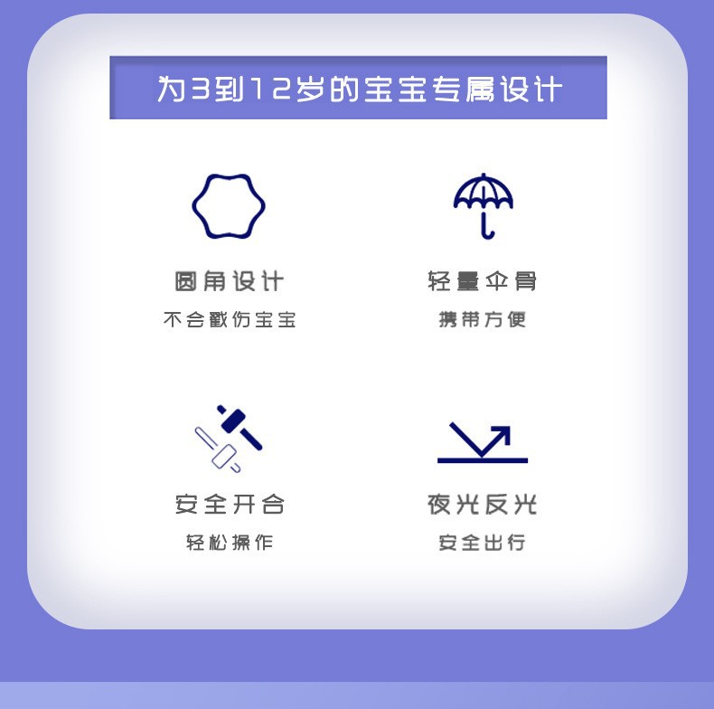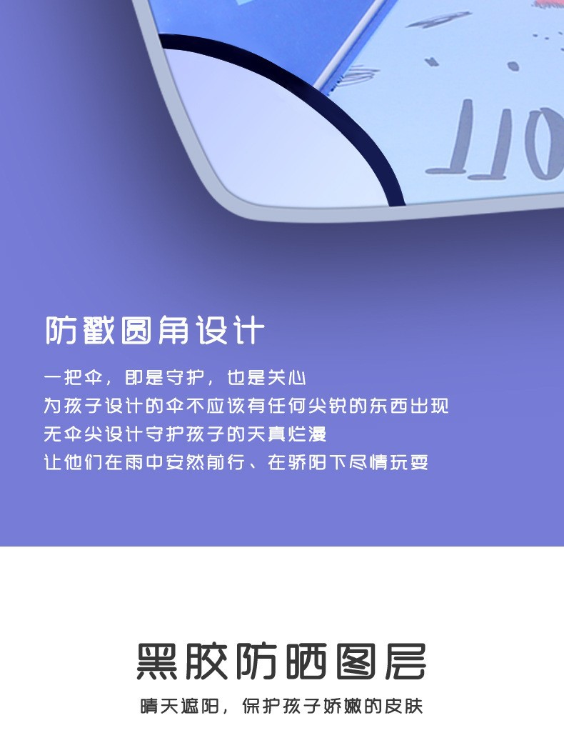 어린이 우산 만화 직선 둥근 모서리 비닐 우산 안티 스터치 안전 반사 스트립 아기 우산 사용자 정의 로고