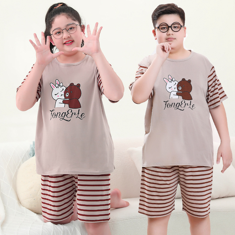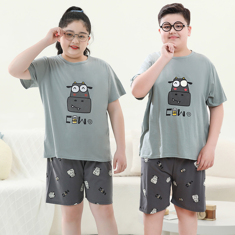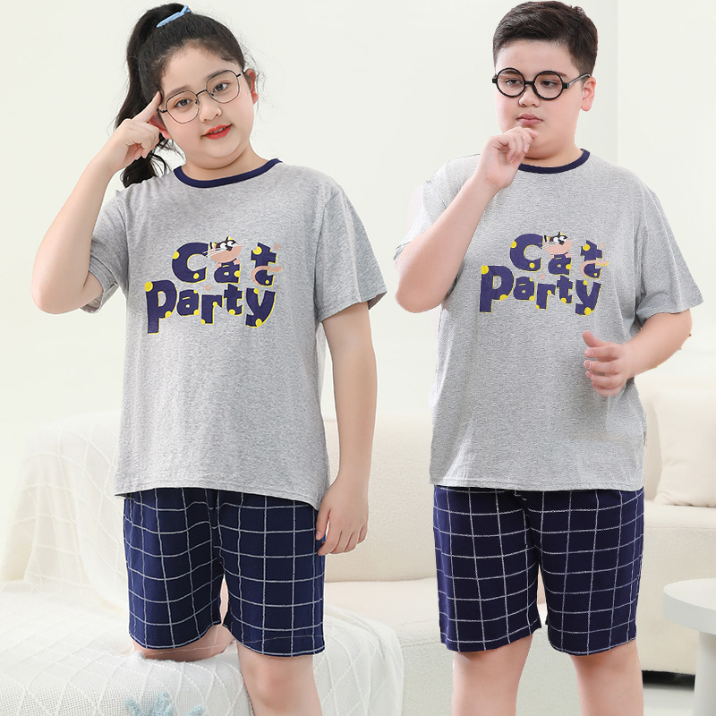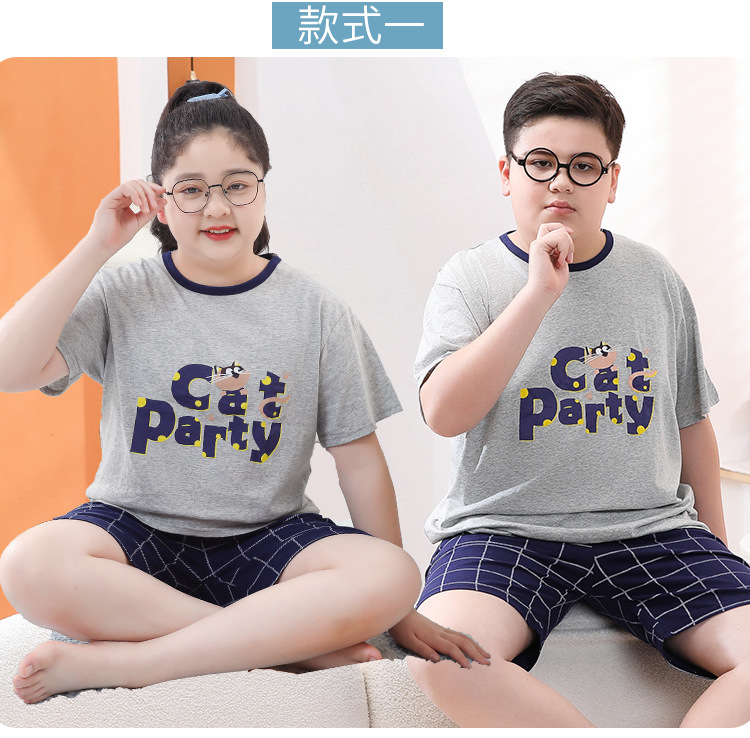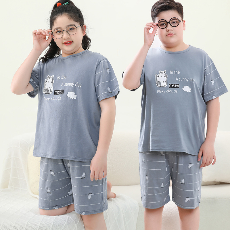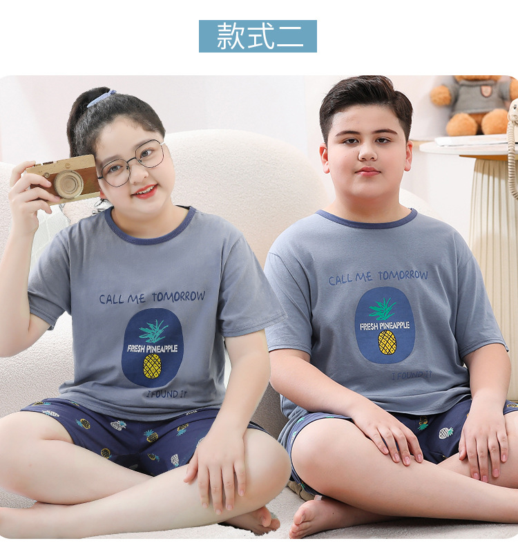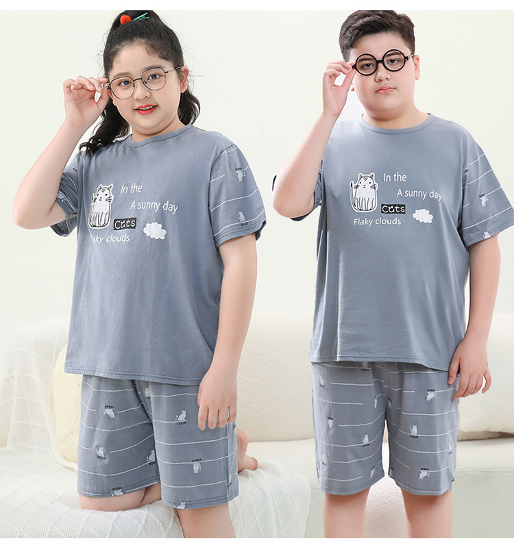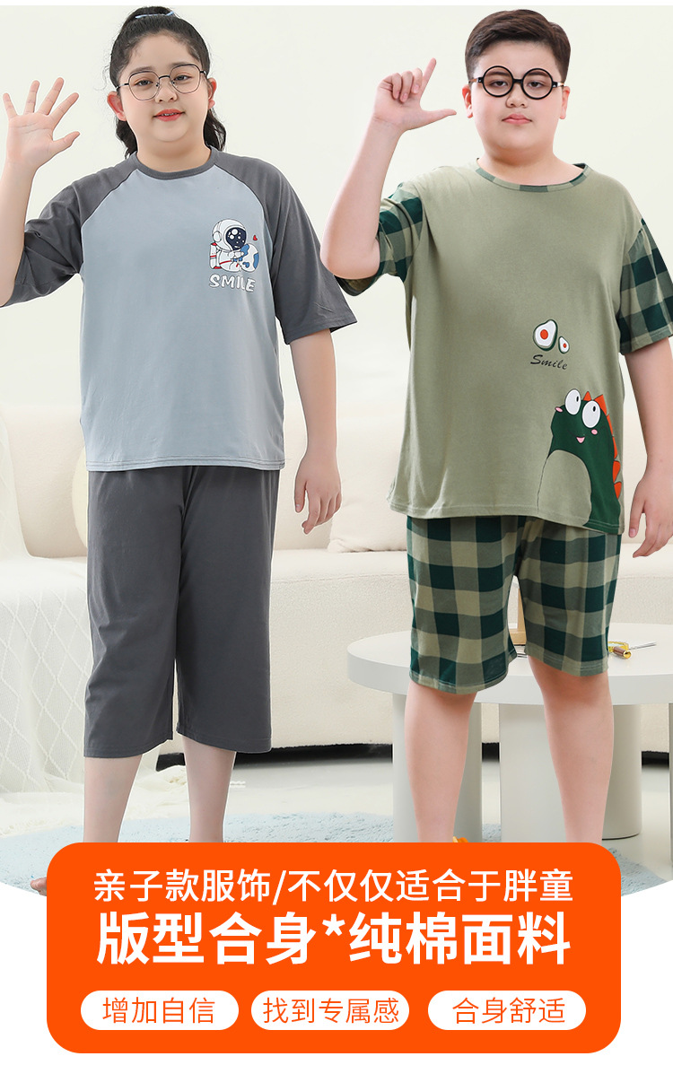 뚱뚱한 아동 의류 소년 플러스 사이즈 여름 착용 얇은 에어컨 의류 플러스 무게 플러스 가정 의류 십대 잠옷 투피스 유행스토어 가기