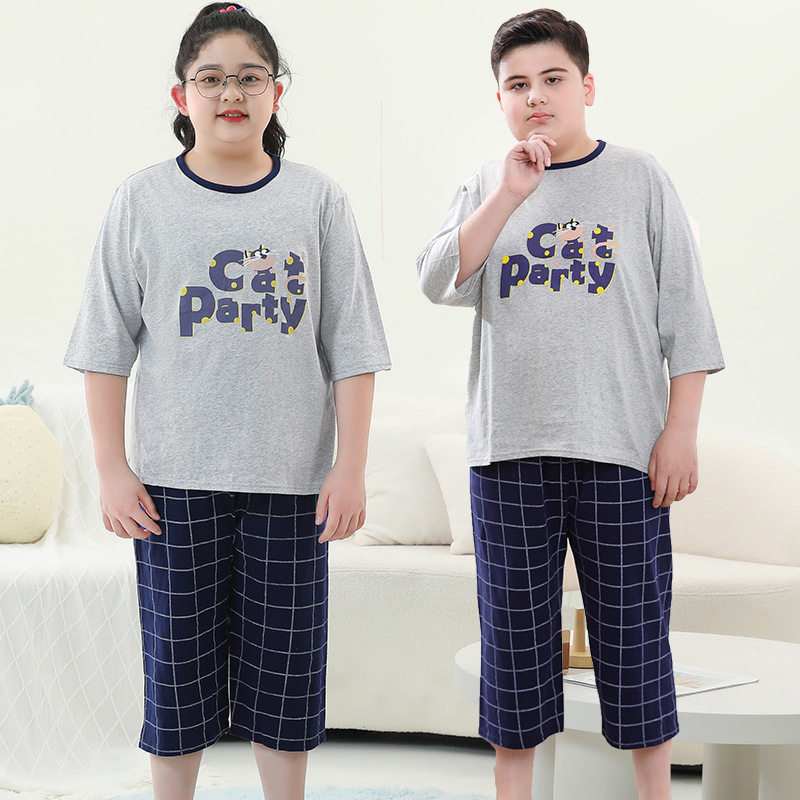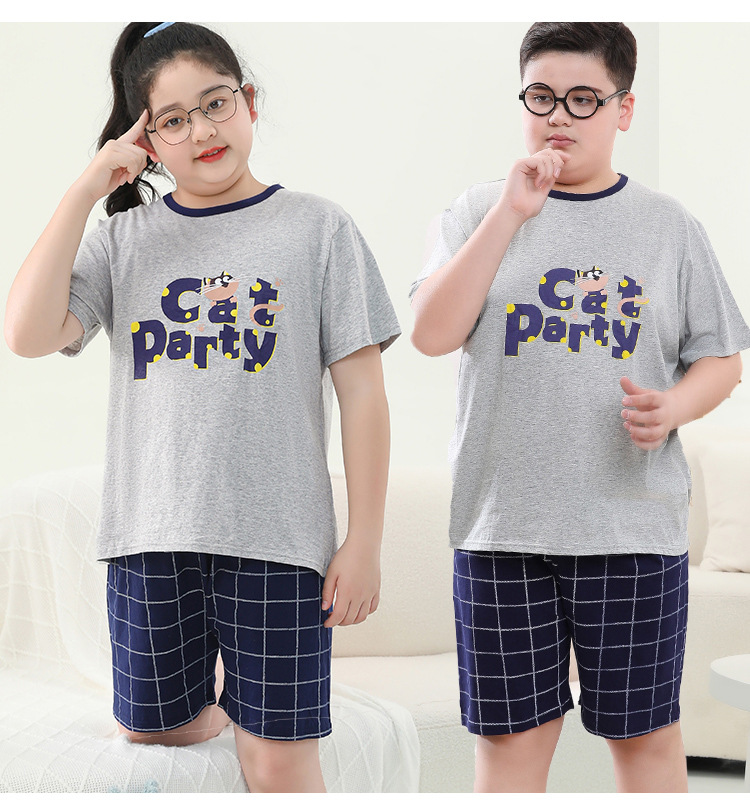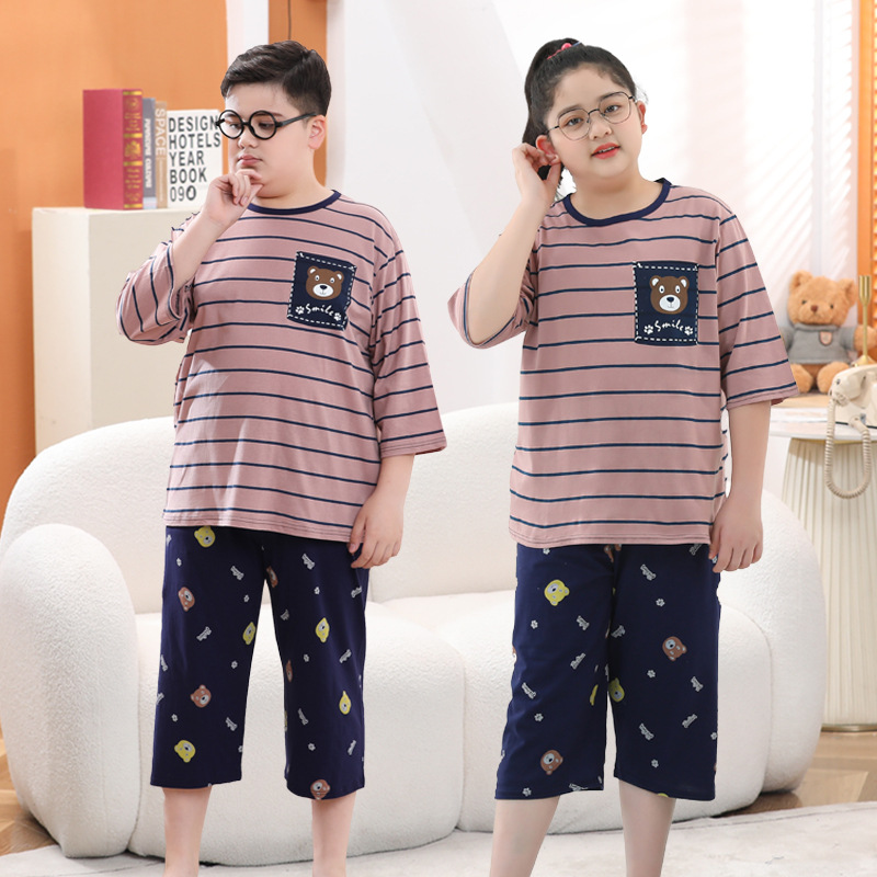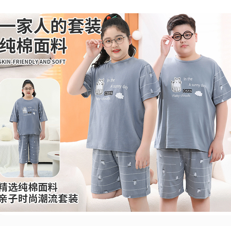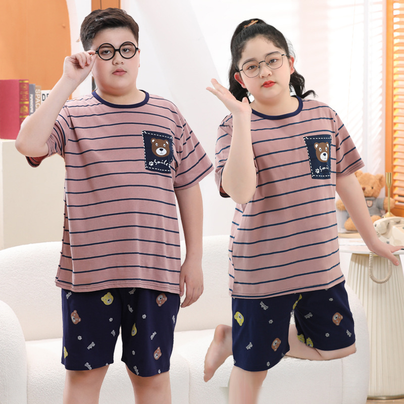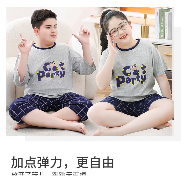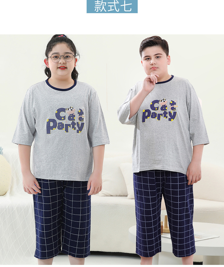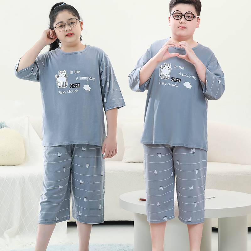 뚱뚱한 아동 의류 소년 플러스 사이즈 여름 착용 얇은 에어컨 의류 플러스 무게 플러스 가정 의류 십대 잠옷 투피스 유행스토어 가기