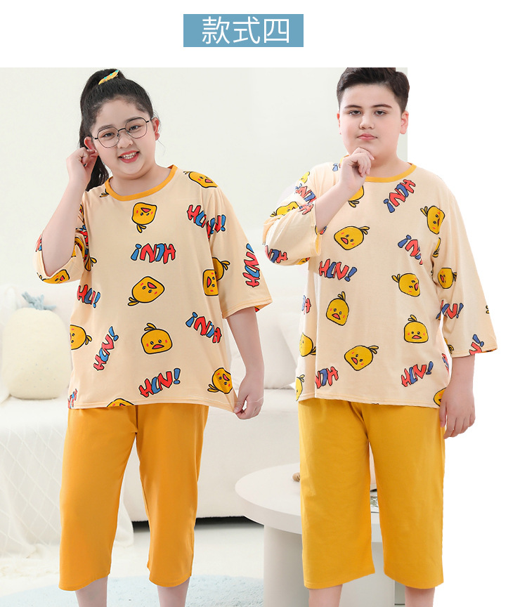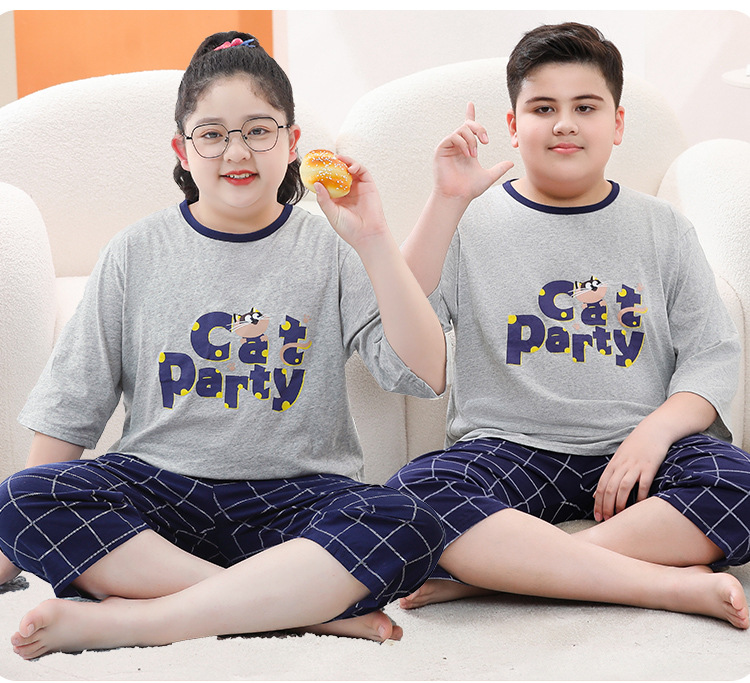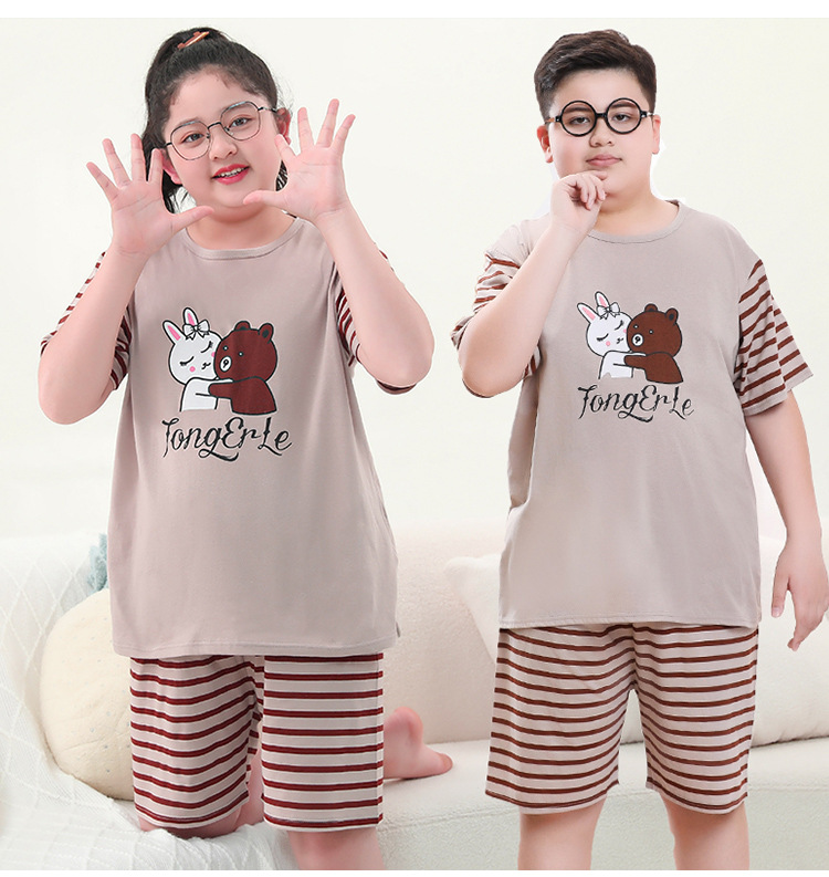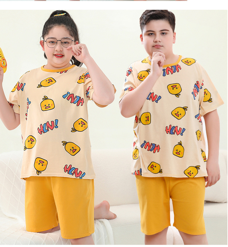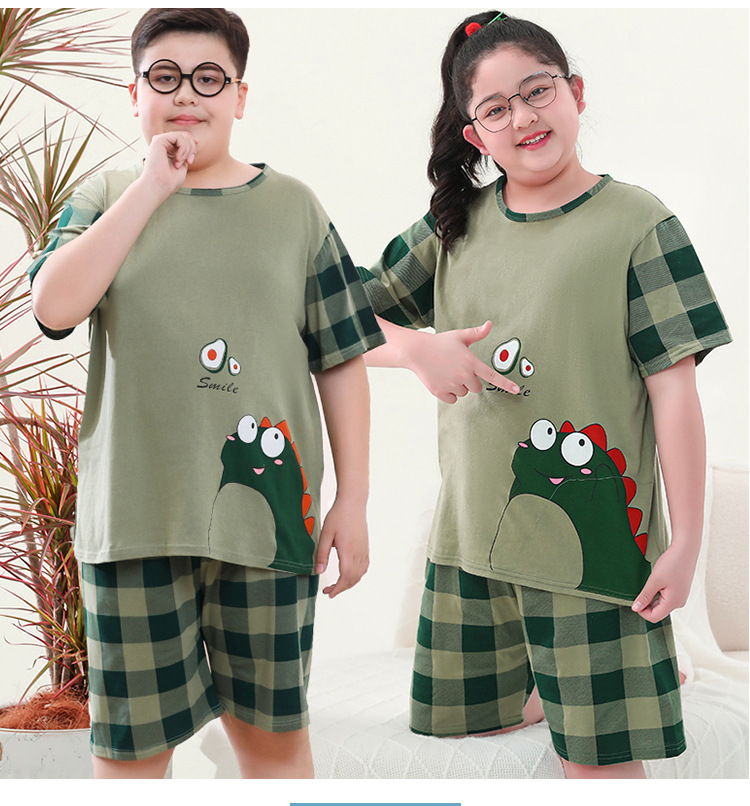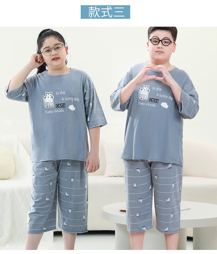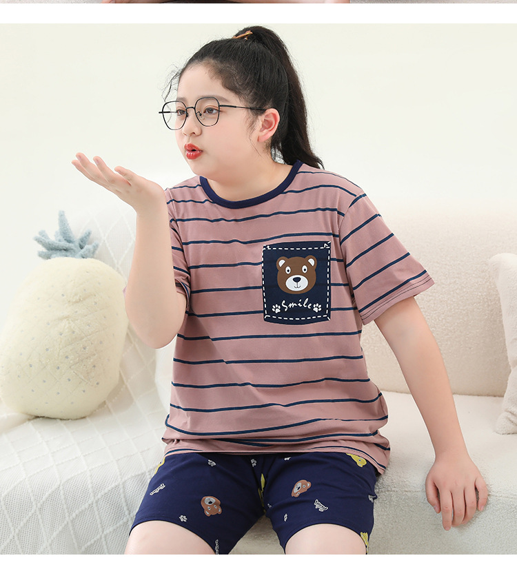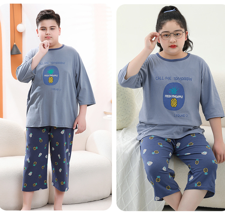 뚱뚱한 아동 의류 소년 플러스 사이즈 여름 착용 얇은 에어컨 의류 플러스 무게 플러스 가정 의류 십대 잠옷 투피스 유행스토어 가기
