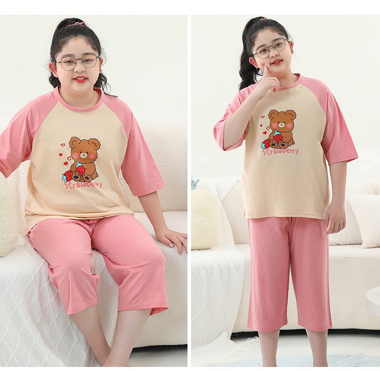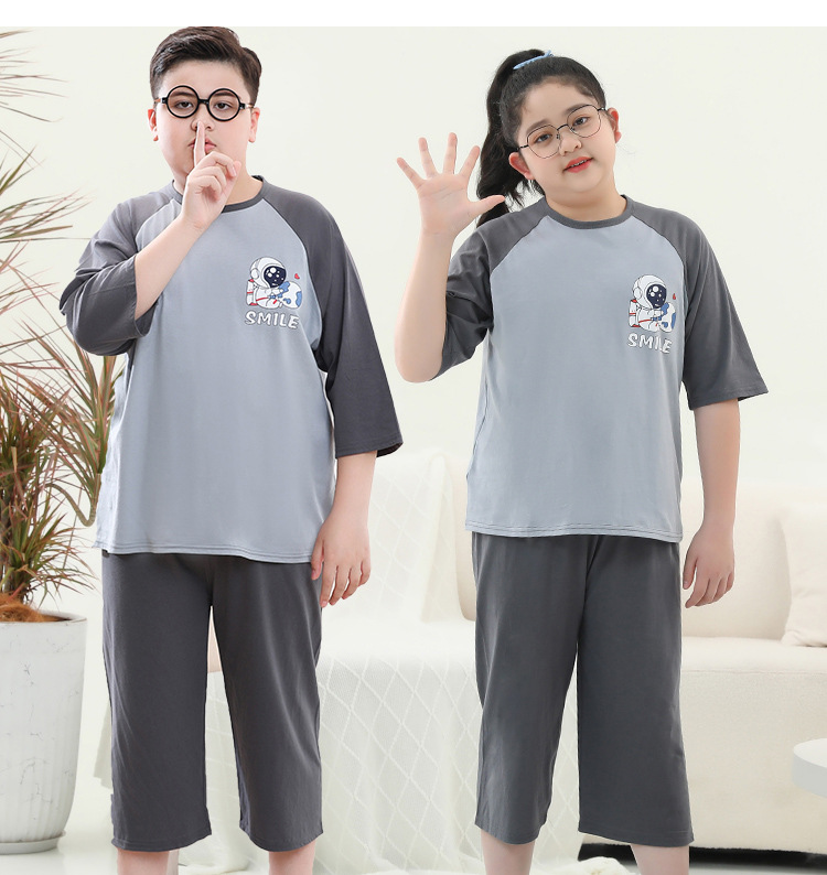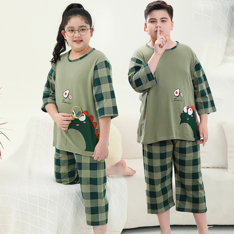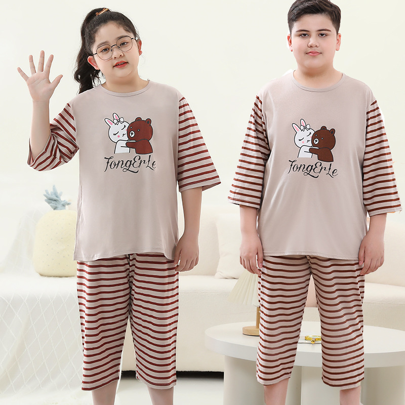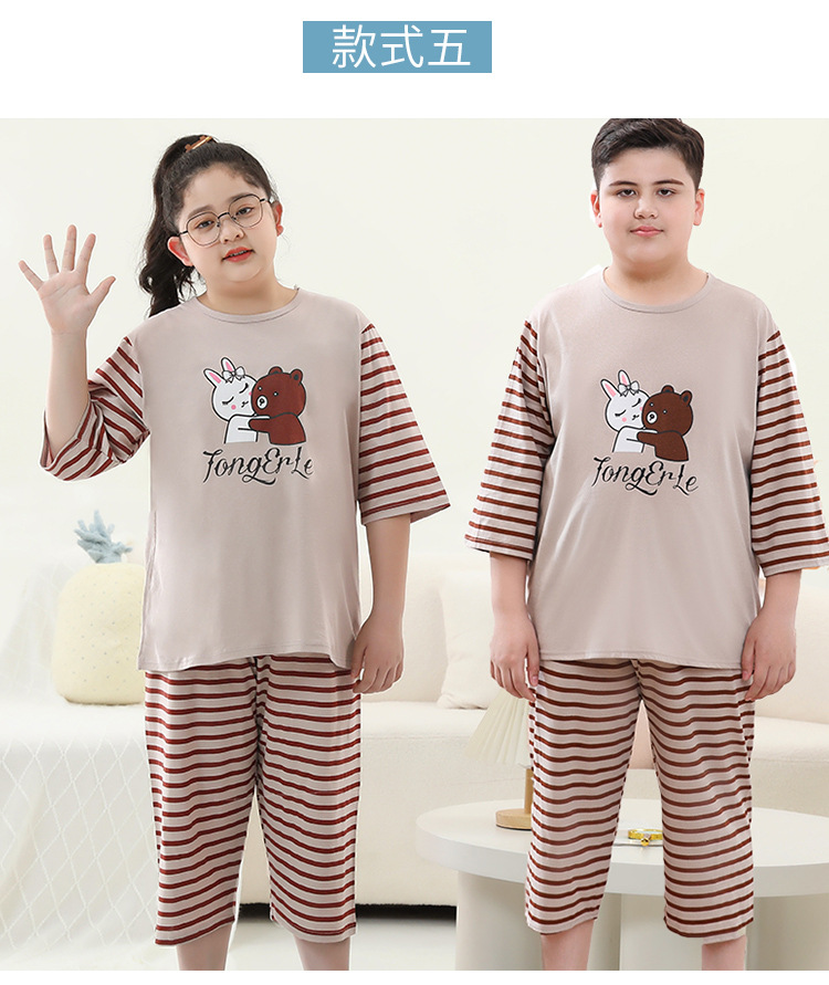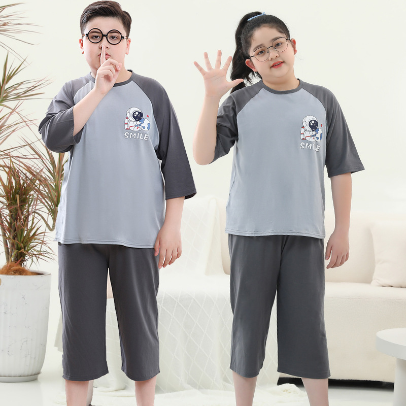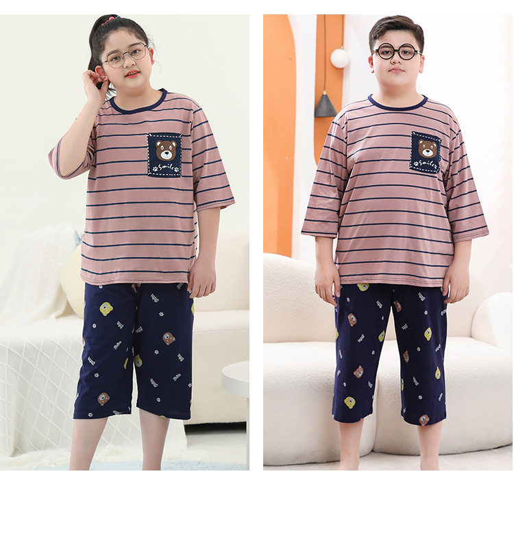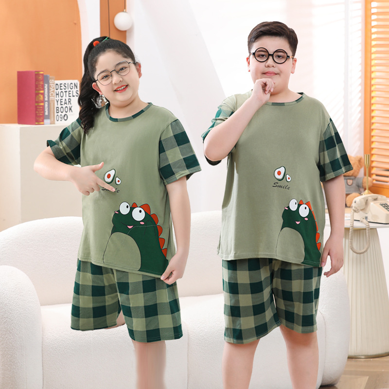 뚱뚱한 아동 의류 소년 플러스 사이즈 여름 착용 얇은 에어컨 의류 플러스 무게 플러스 가정 의류 십대 잠옷 투피스 유행스토어 가기