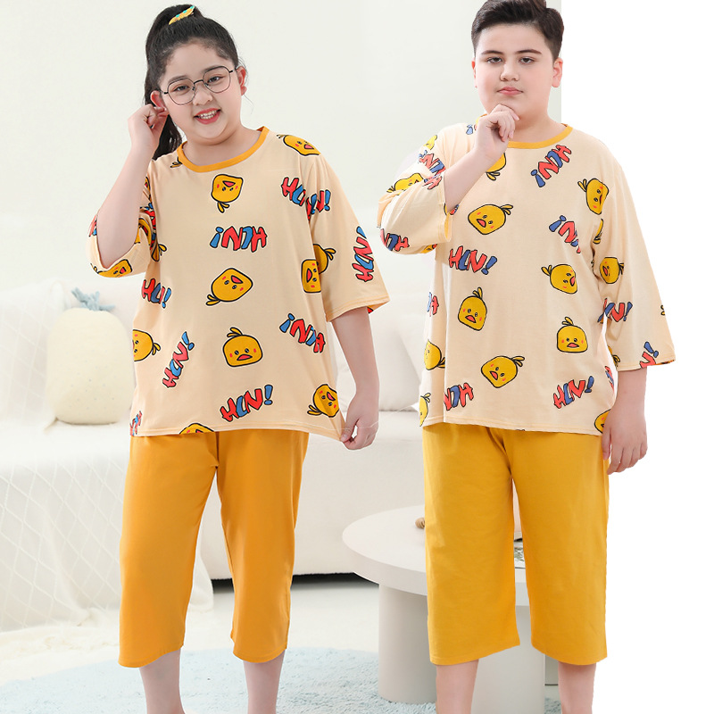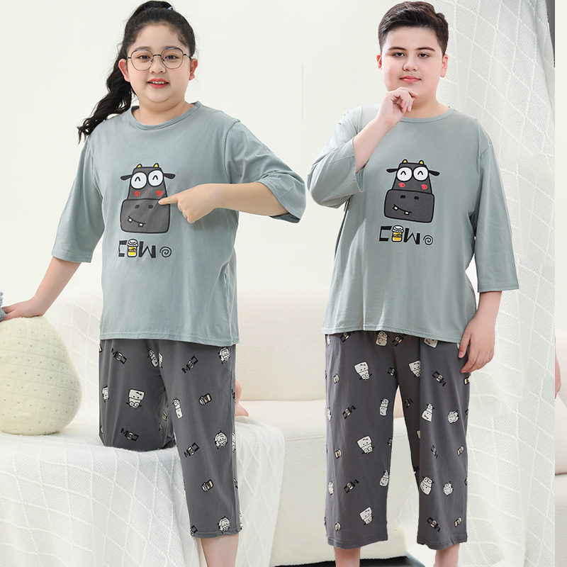 뚱뚱한 아동 의류 소년 플러스 사이즈 여름 착용 얇은 에어컨 의류 플러스 무게 플러스 가정 의류 십대 잠옷 투피스 유행