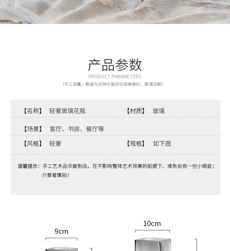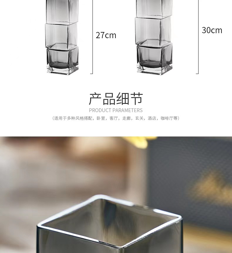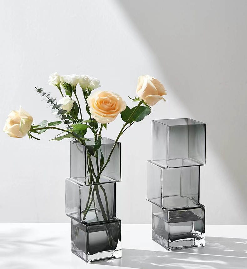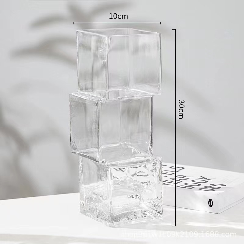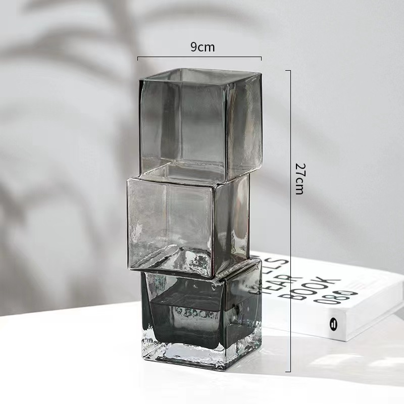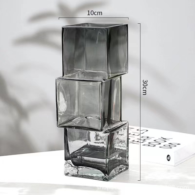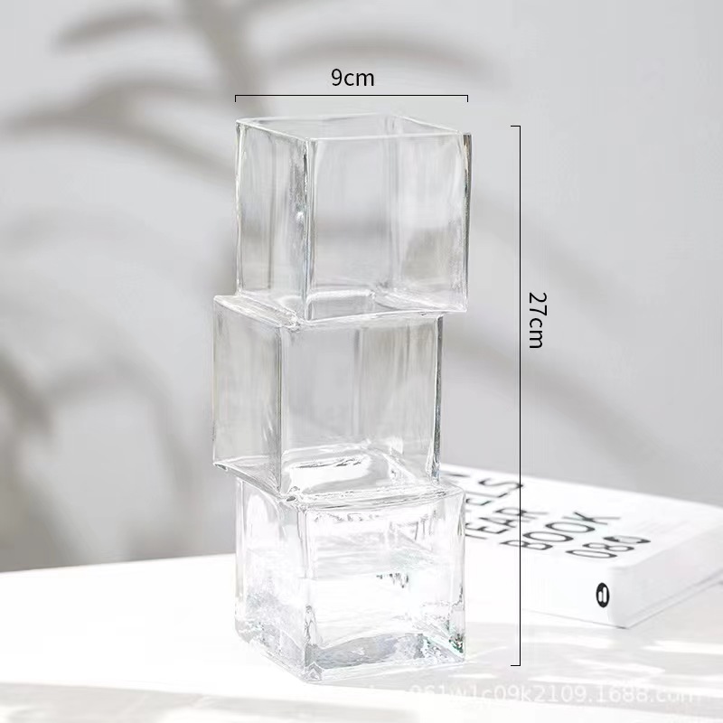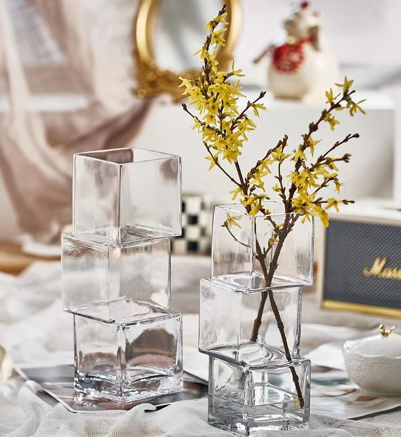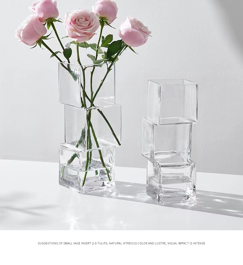 가벼운 럭셔리 창조적 인 모양의 잘못 배치 된 사각 꽃병 유리 투명 수경 꽃 꽃 배열 거실 식탁 장식 장식품