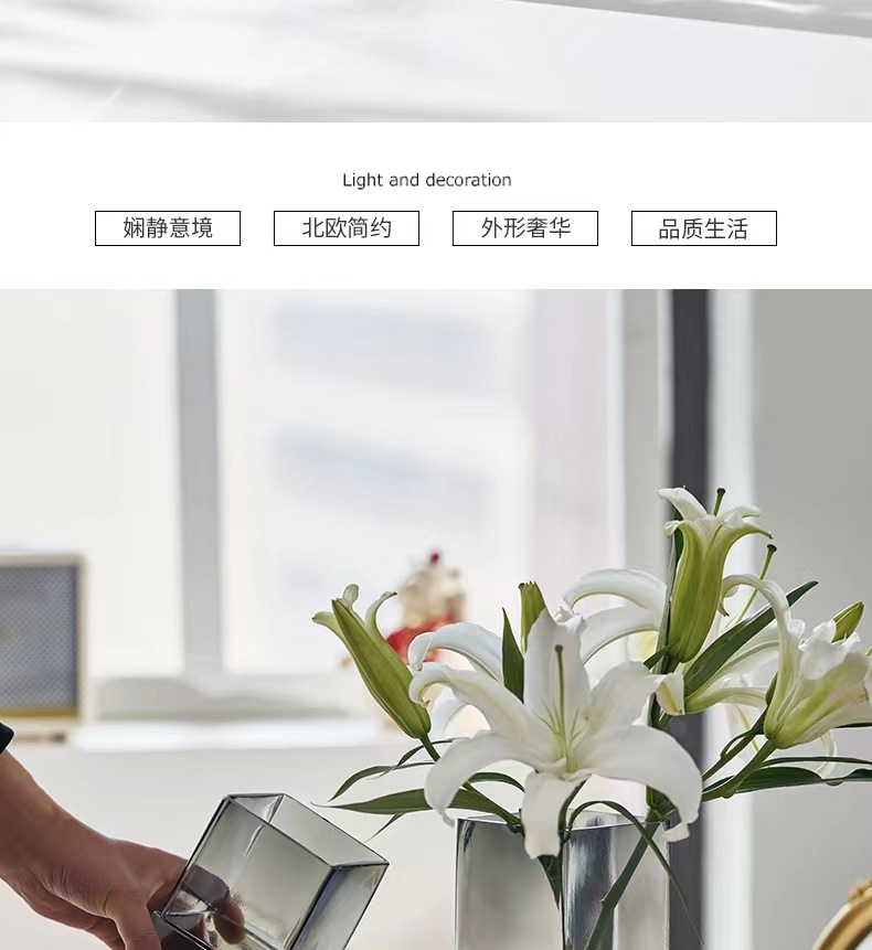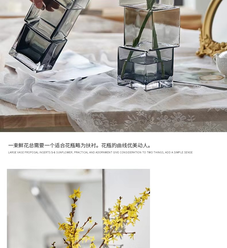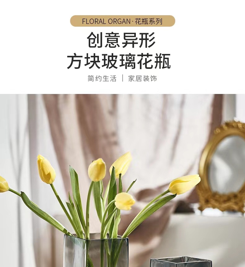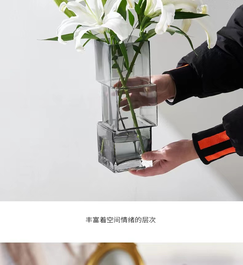 가벼운 럭셔리 창조적 인 모양의 잘못 배치 된 사각 꽃병 유리 투명 수경 꽃 꽃 배열 거실 식탁 장식 장식품스토어 가기