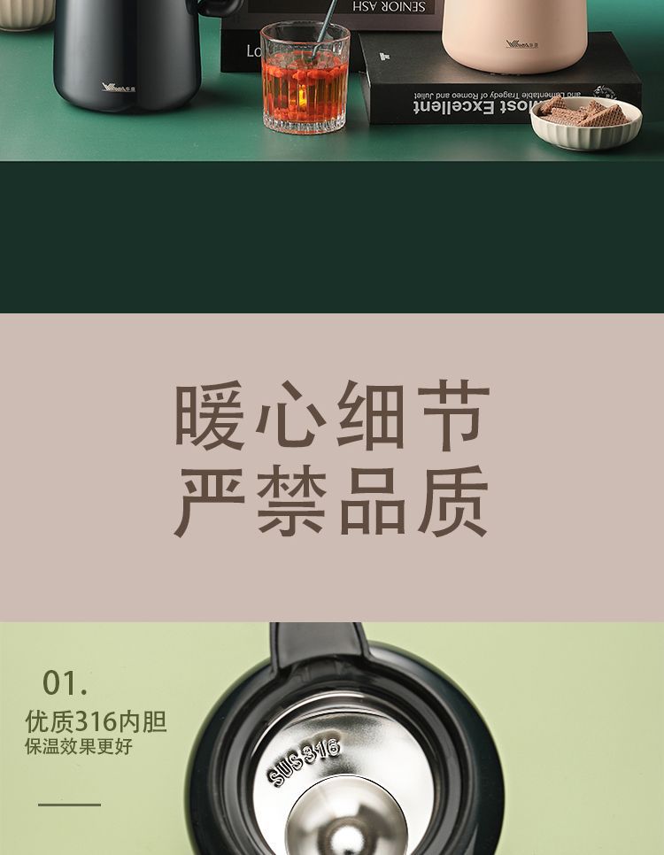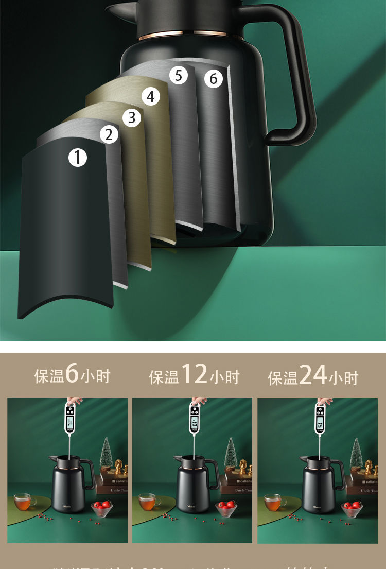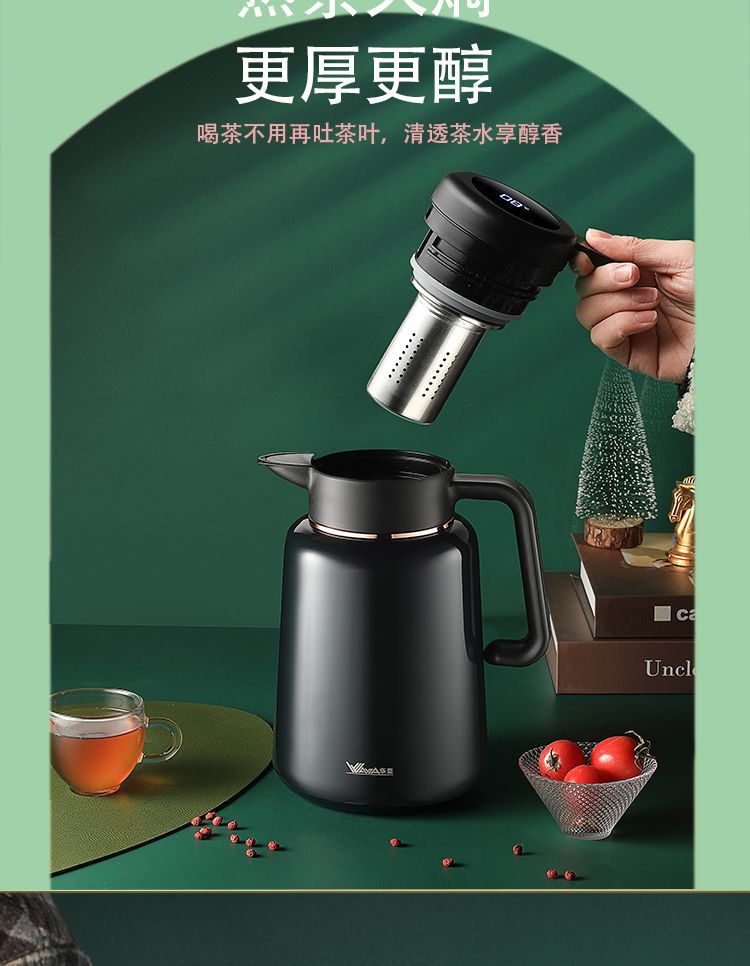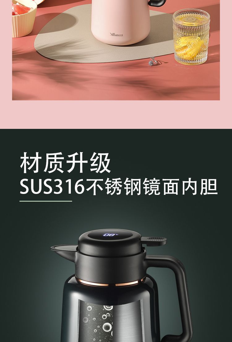 화야 316 스테인리스 대용량 보온병 온도 표시 진공 분리형 티팟 차/커피 포트