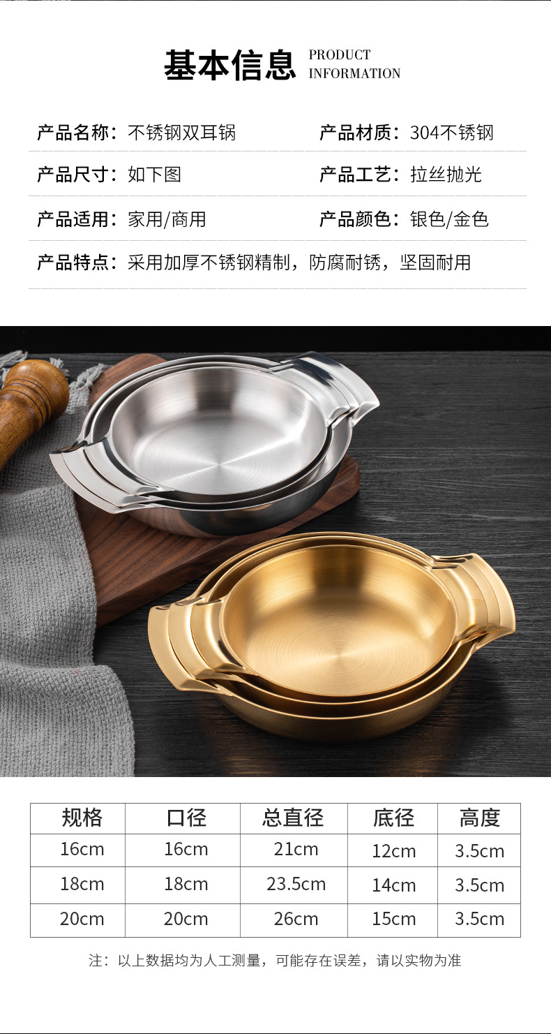 한국식 스테인레스 드라이 포트 결합 플레이트 바 이노 럴 스낵 플레이트 파스타 구운 밥 레스토랑 골든 디스크 해산물 소 냄비