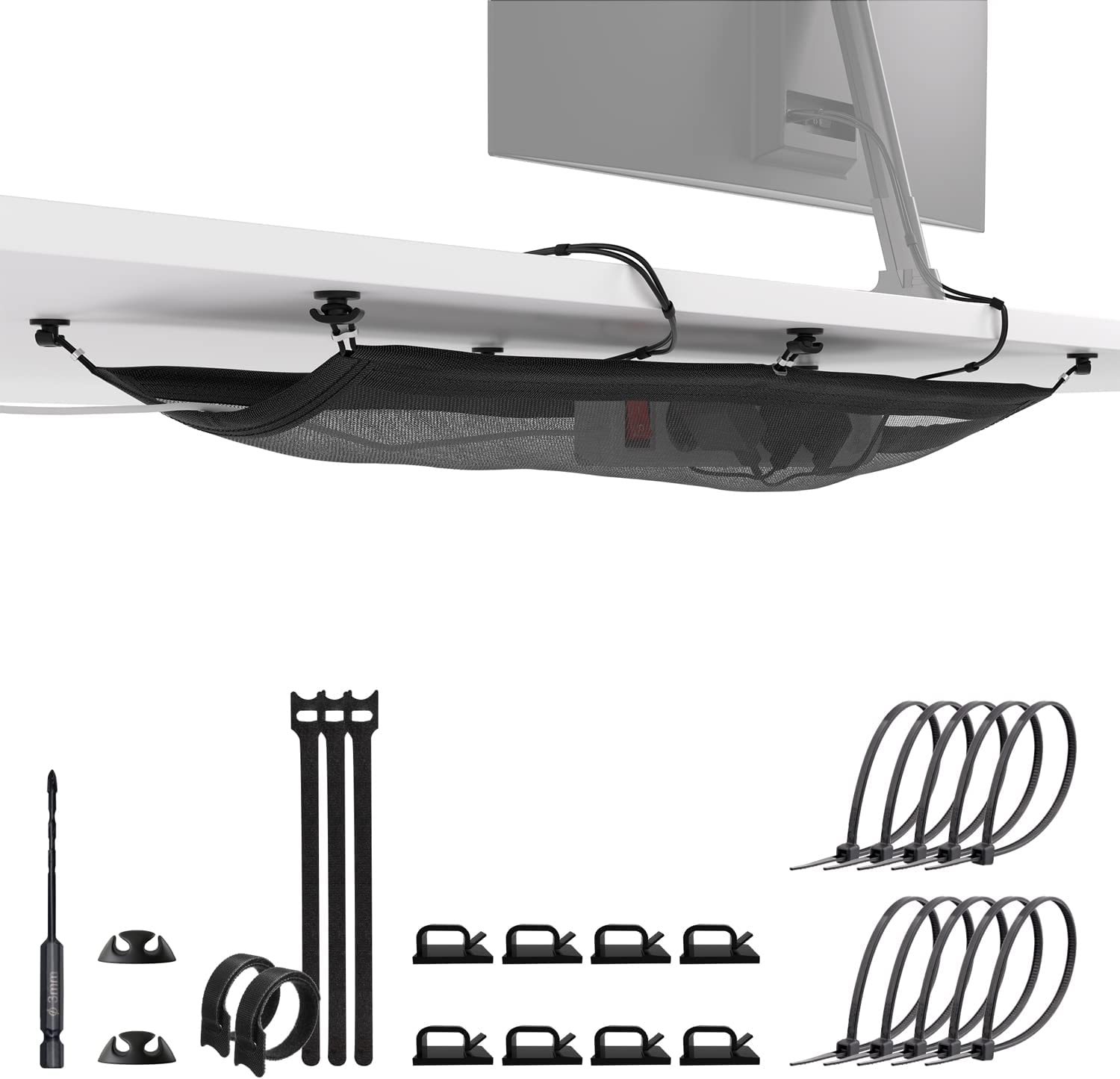 책상 그물 포켓 와이어 스토리지 조직 Winder 아래 책상 바닥 세트 라인 조직 가방 케이블 관리자