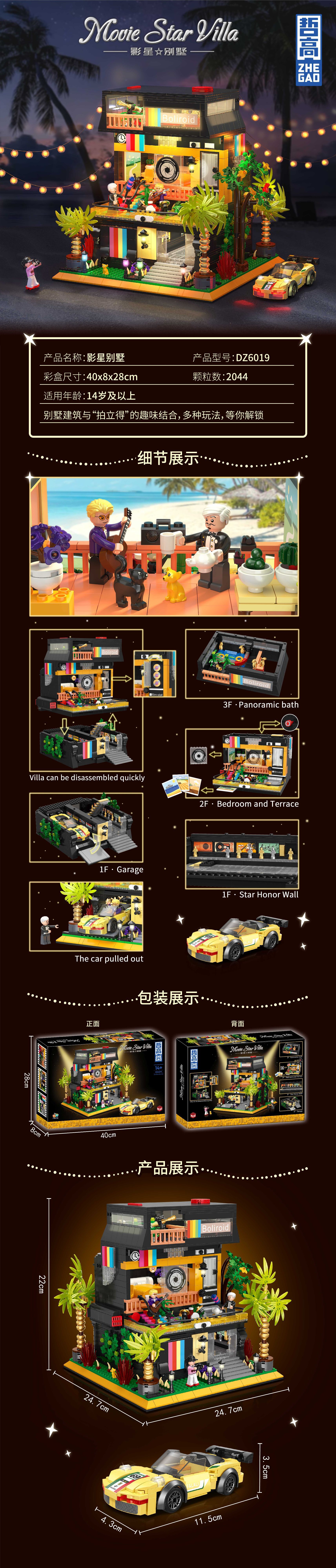Zhegao MINI3.6 DZ6019 영화 스타 빌라 소녀 하우스 크리에이티브 스트리트 뷰 시리즈 빌딩 블록 조립 장난감스토어 가기