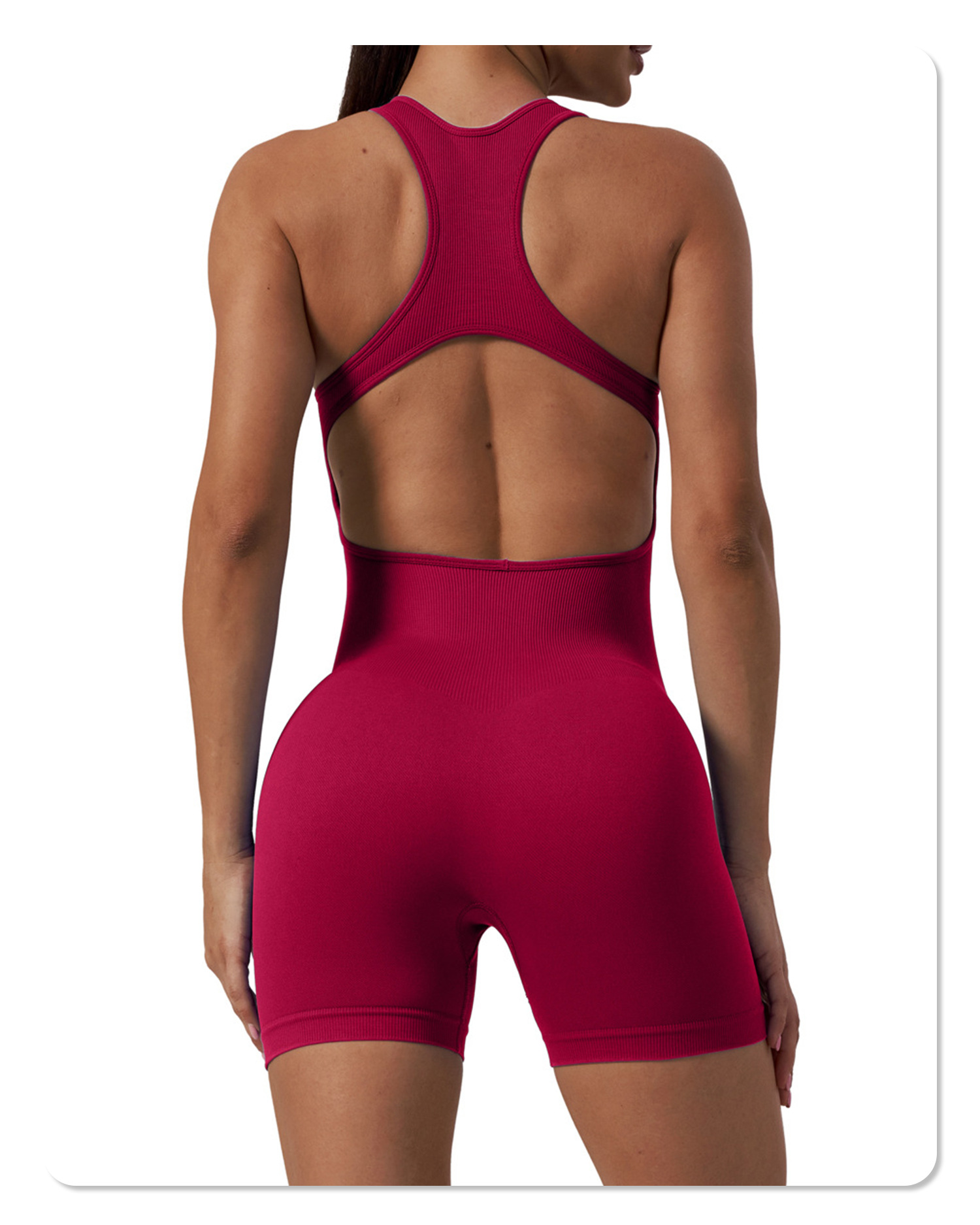 재고 INS 유럽과 미국 원활한 원피스 요가 의류 댄스 슬림 핏 탄성 스포츠 아름다운 등 엉덩이 리프팅 원피스 반바지