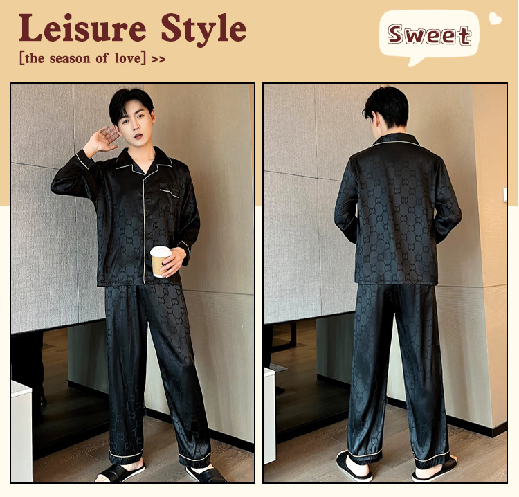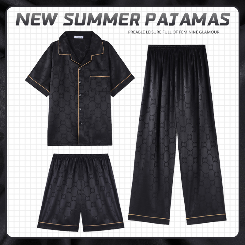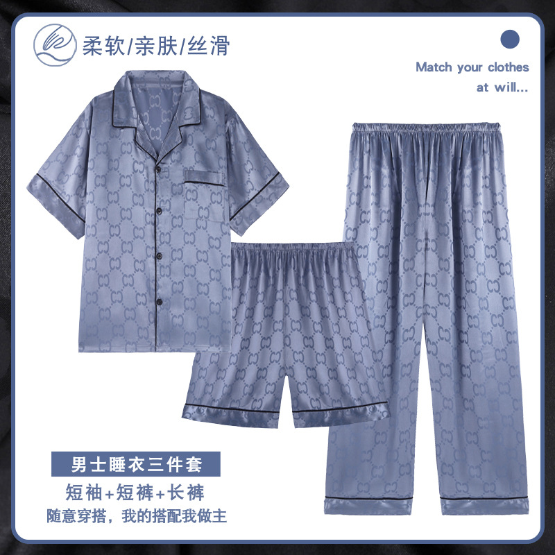 수정 된 플러스 사이즈 300kg 잠옷 남자 쓰리 피스 아이스 실크 여름 반팔 한국 카디건 긴 반바지 가정 옷스토어 가기