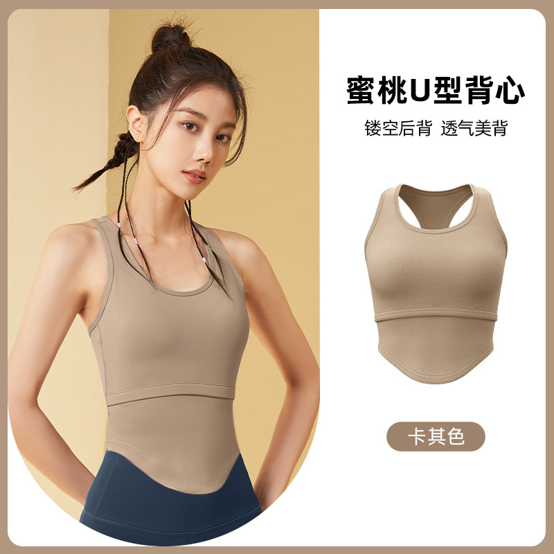 복숭아 와이드 숄더 스트랩 U 자형 중공 등 요가 조끼 통합 가슴 패드 충격 방지 야외 스포츠 피트니스 런닝복