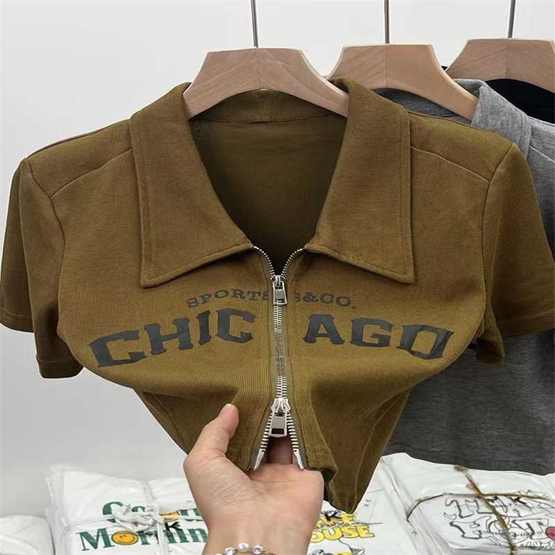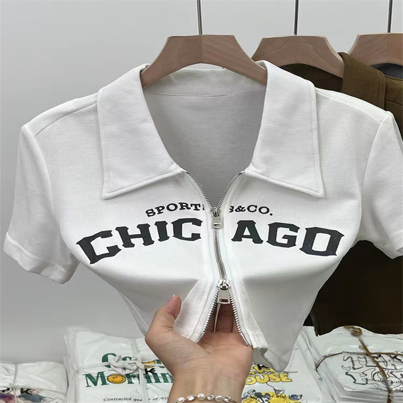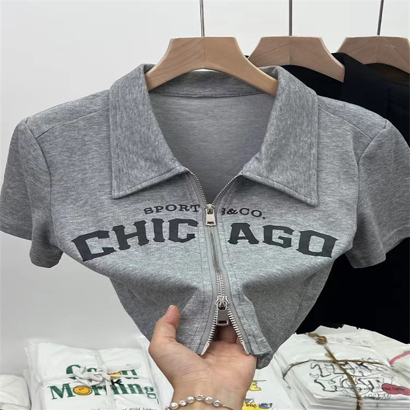 여아 여름 새 알파벳 가디건 짧은 폴로 셔츠 탑 대형 어린이 옷깃 반팔 유행 캐주얼 티셔츠스토어 가기