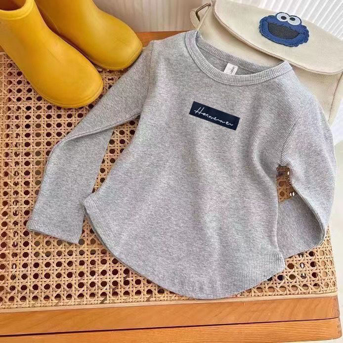 2023 신상 아동 여아 여성용 긴팔 티셔츠 한국식 올매치 불규칙 솔리드 컬러 베이스 셔츠 트렌디 0101