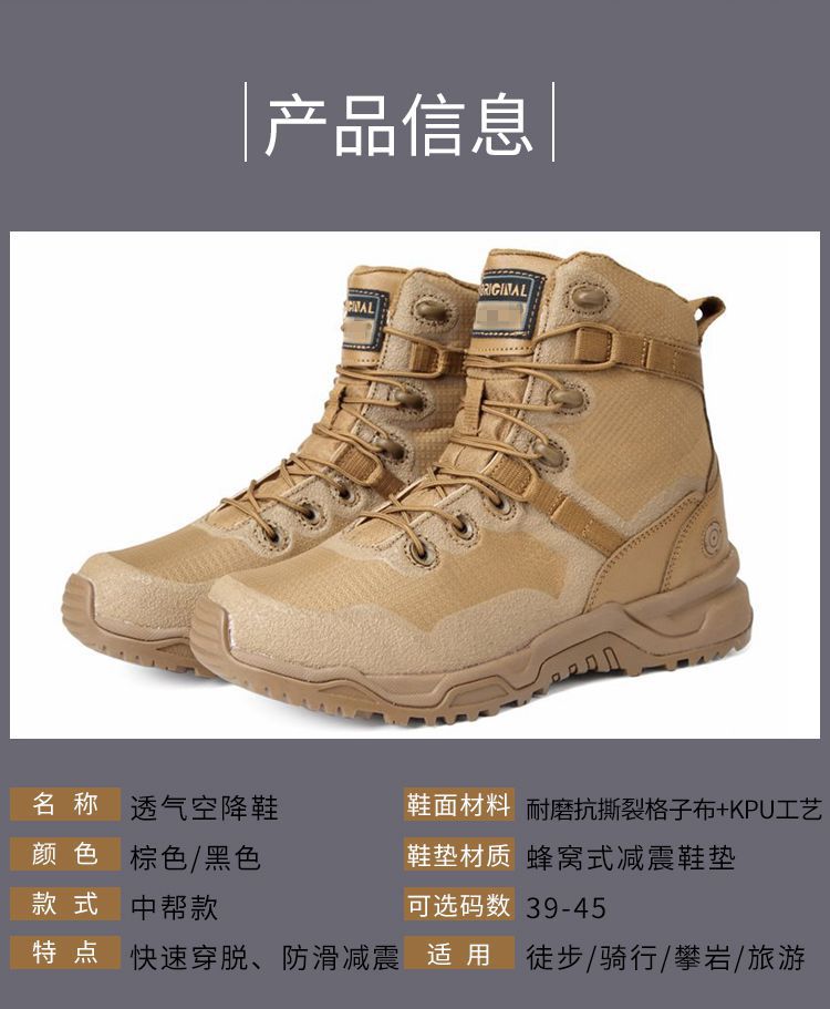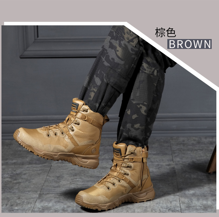 야외 경량 전술 부츠 하이탑 사막 부츠 크로스 보더 육군 부츠 통기성 정글 부츠 다크 브라운 등산 신발 방수스토어 가기