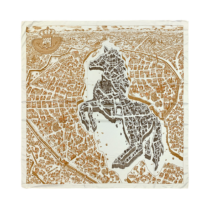 Horse City Xiuzhi 프린트 실크 스카프 여성용 90 스퀘어 스카프 실크 작은 실크 스카프 여성용 자외선 차단제 대형 스퀘어 스카프스토어 가기