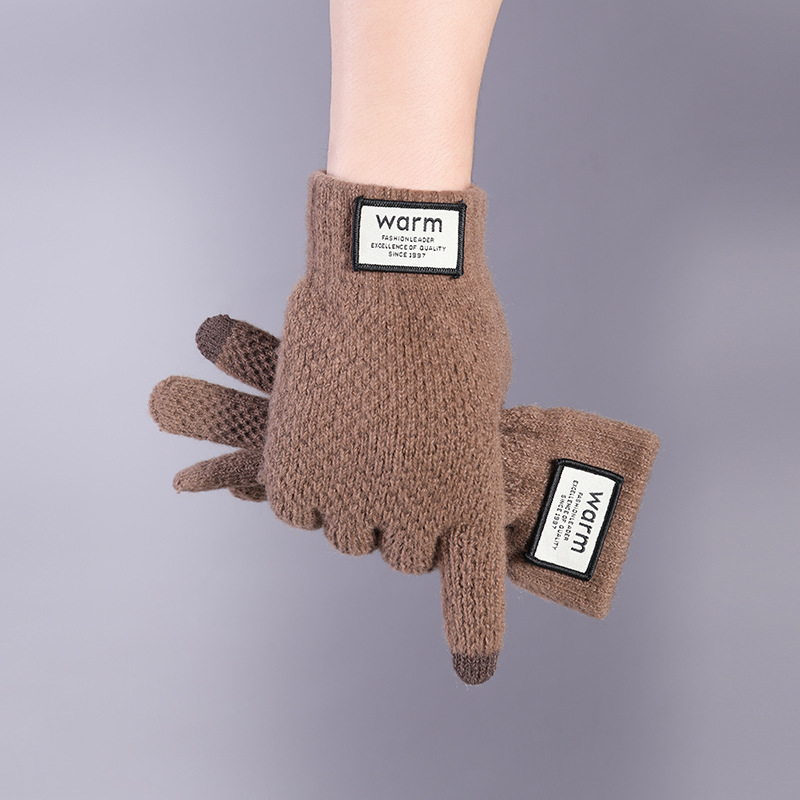 제조업체 스마트 폰 터치 스크린 장갑 겨울 방한 따뜻한 아크릴 장갑 단색 성인 손가락 장갑
