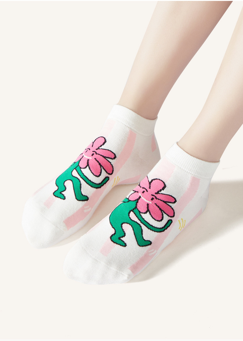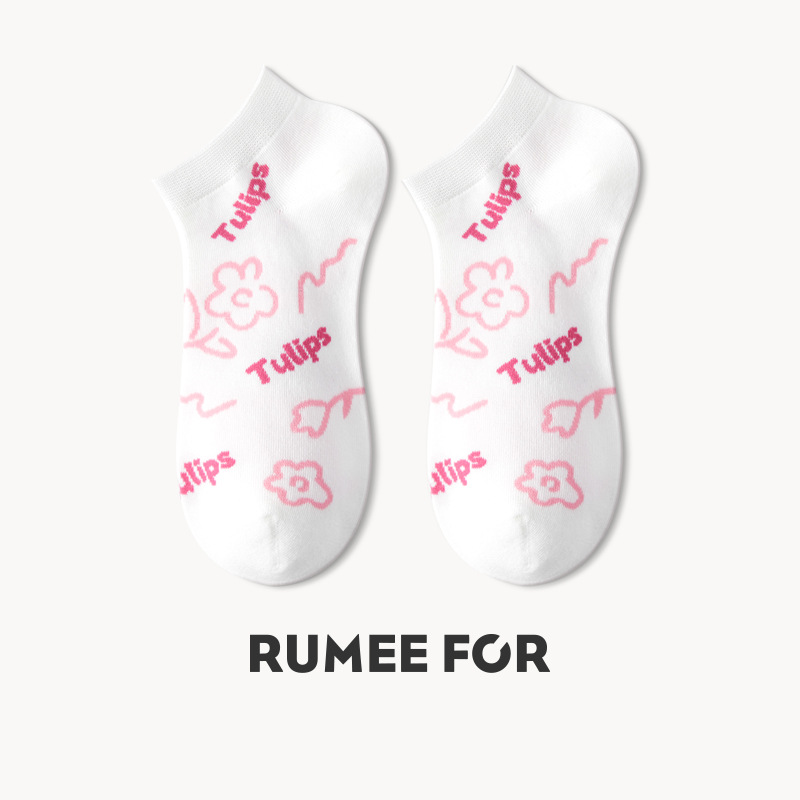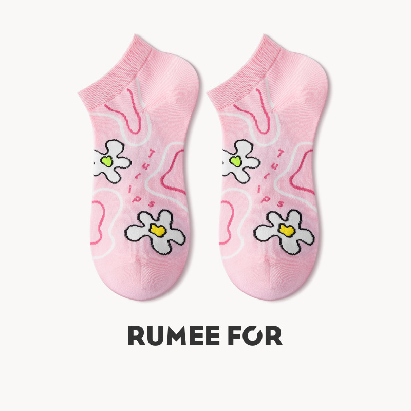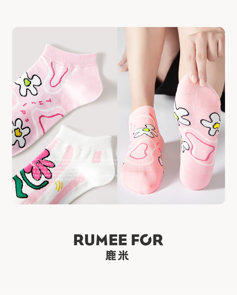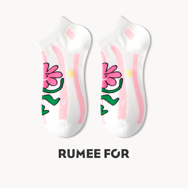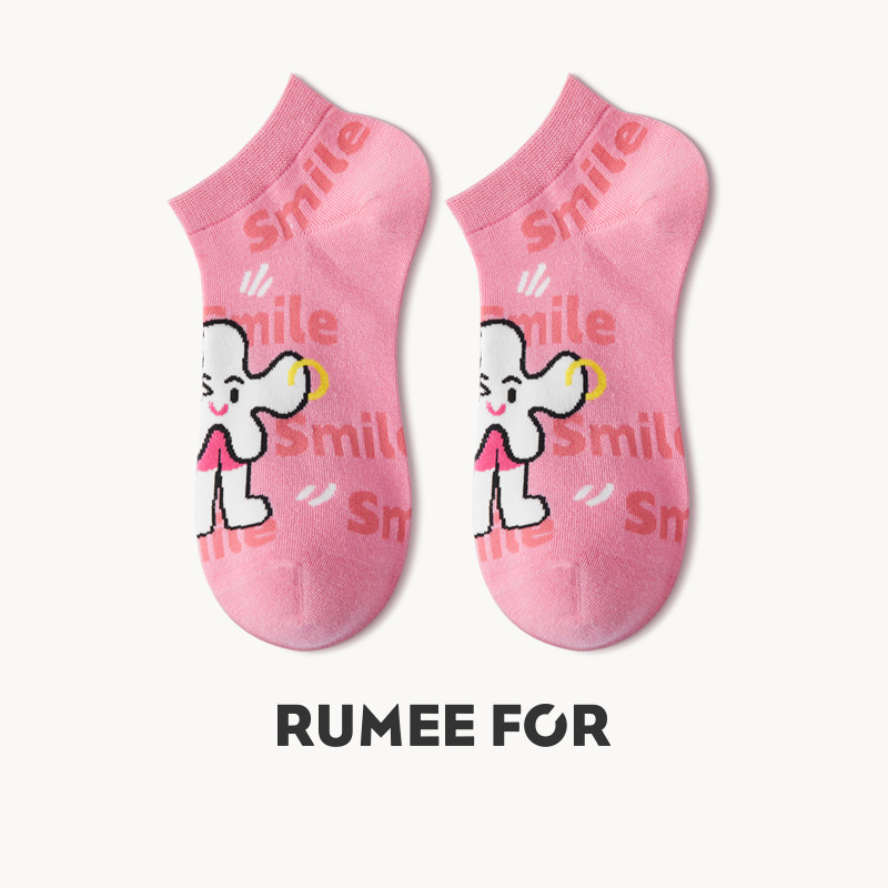 루미 만화 양말 여성용 귀여운 짧은 양말 통기성 좋은 여름 얇은 양말 냄새 방지 땀 흡수 핑크색 면 양말 도매스토어 가기