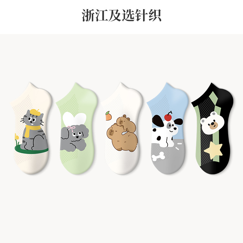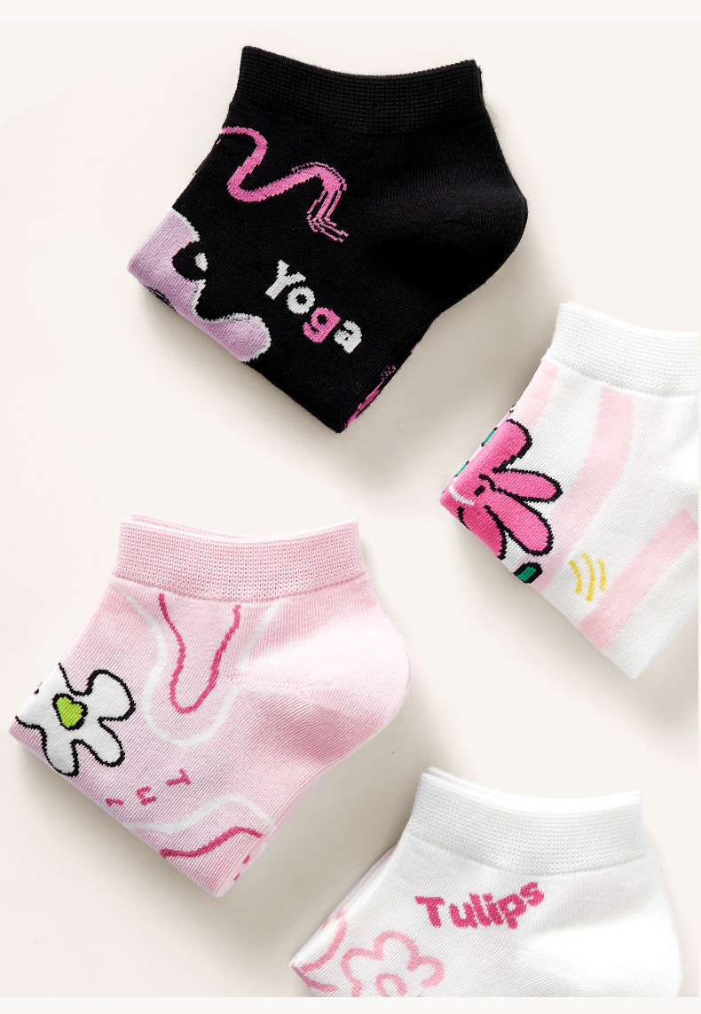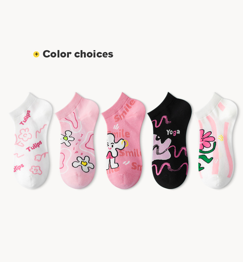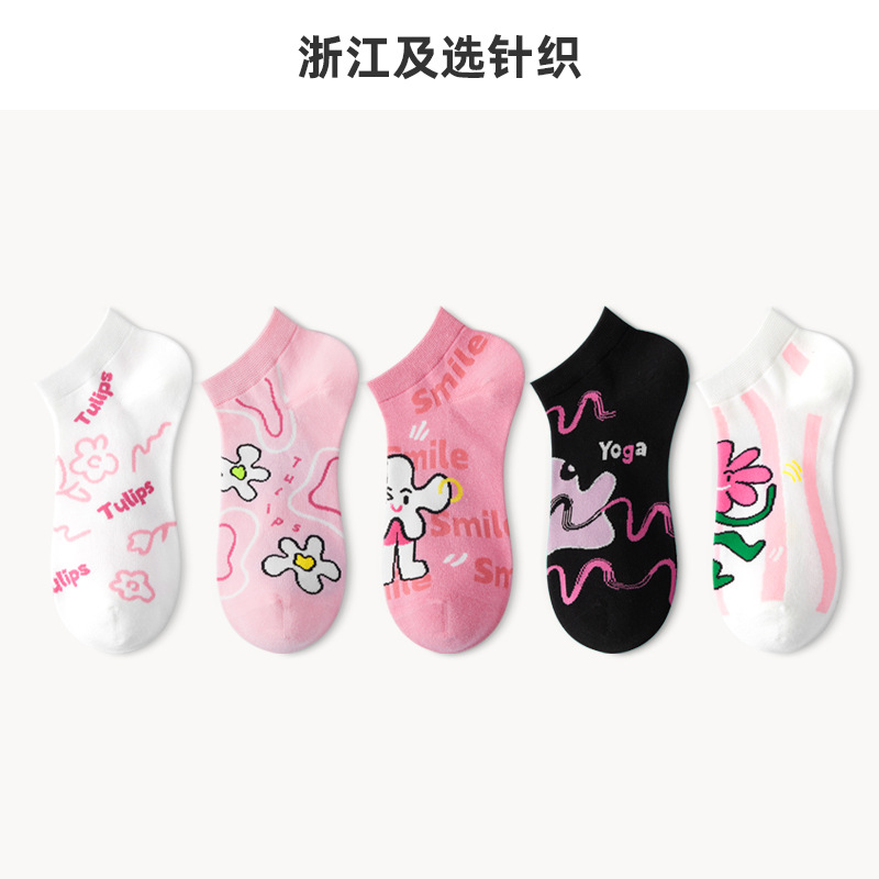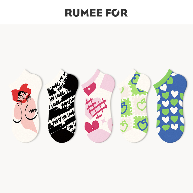 루미 만화 양말 여성용 귀여운 짧은 양말 통기성 좋은 여름 얇은 양말 냄새 방지 땀 흡수 핑크색 면 양말 도매스토어 가기