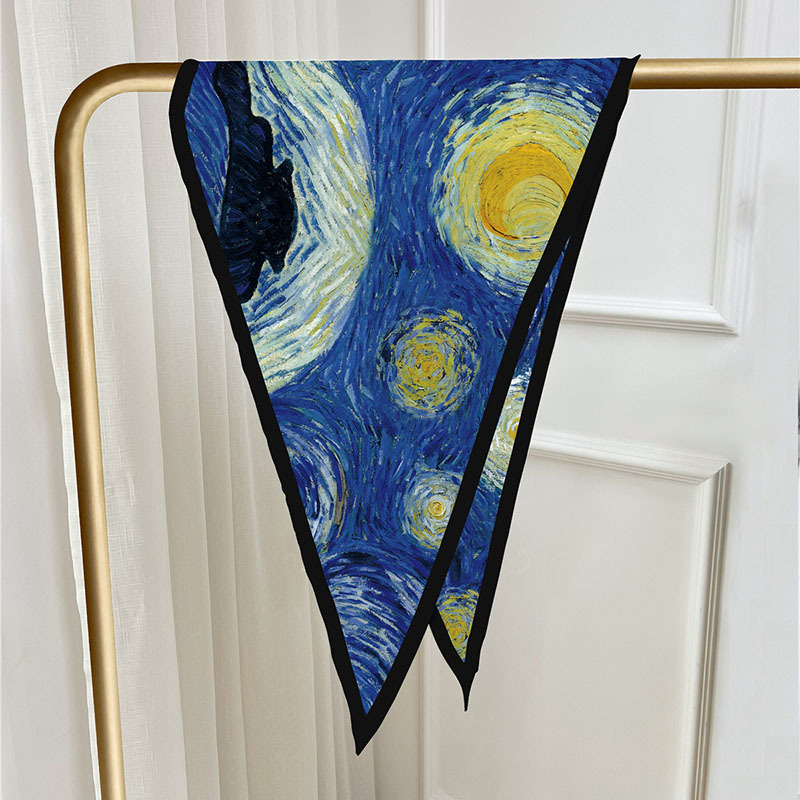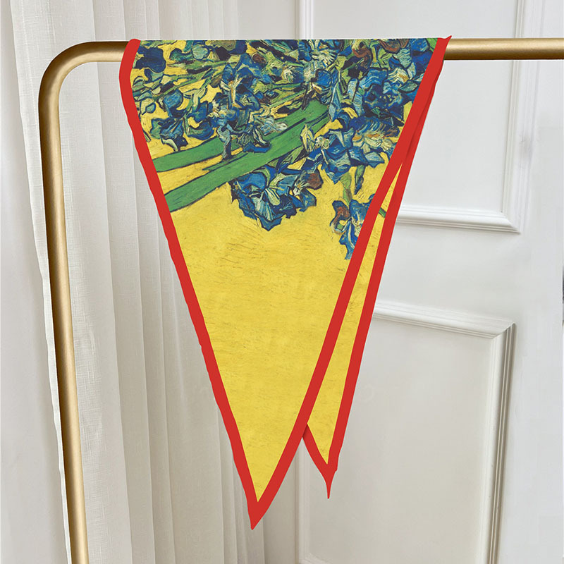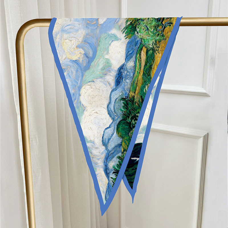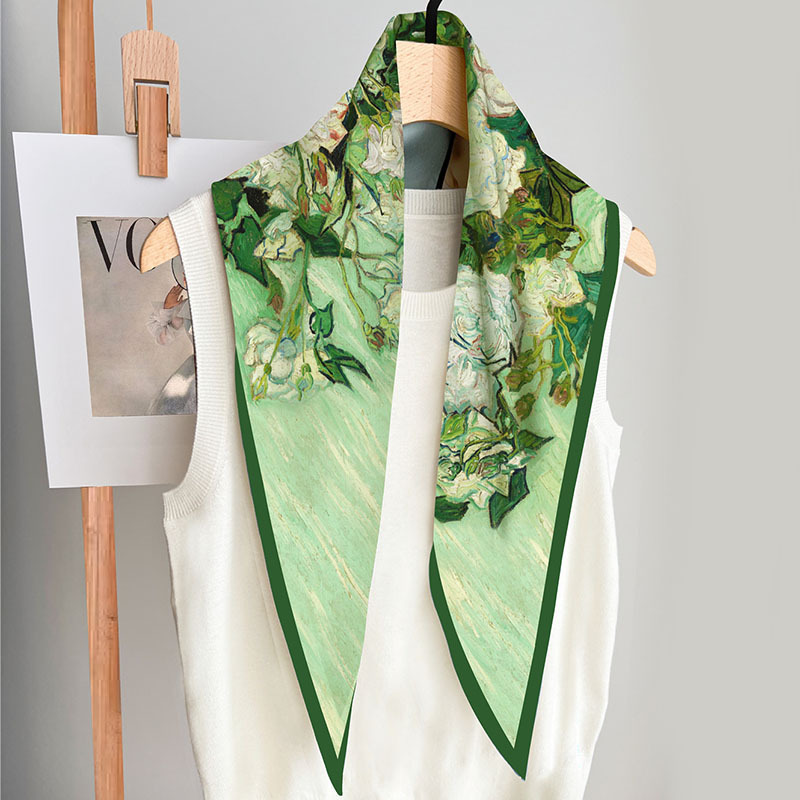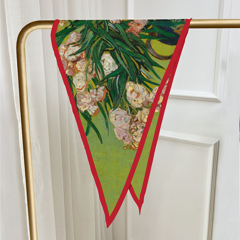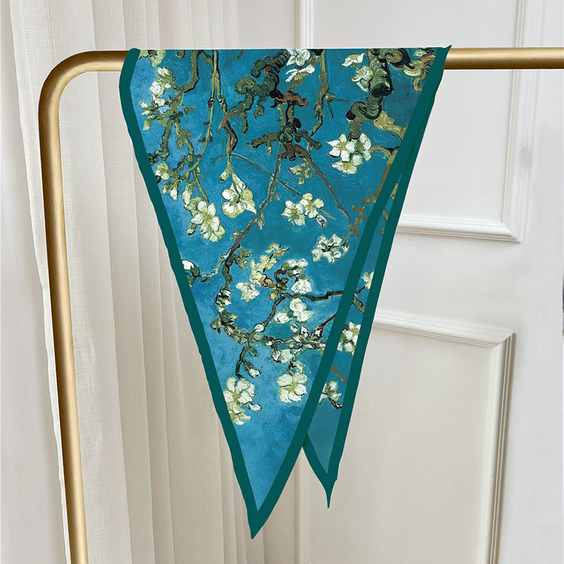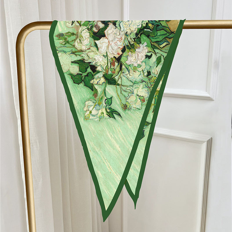 한국 새 반 고흐 유화 장미 여성 트윌 실크 다이아몬드 스카프 봄과 가을 스카프 목도리 삼각형 스카프스토어 가기