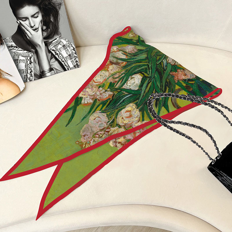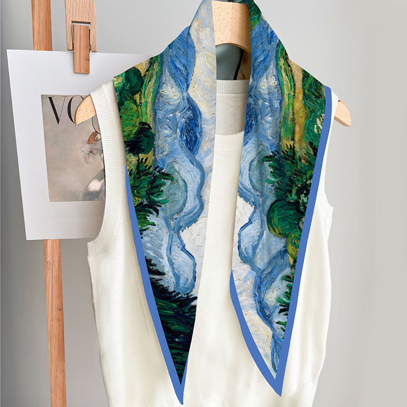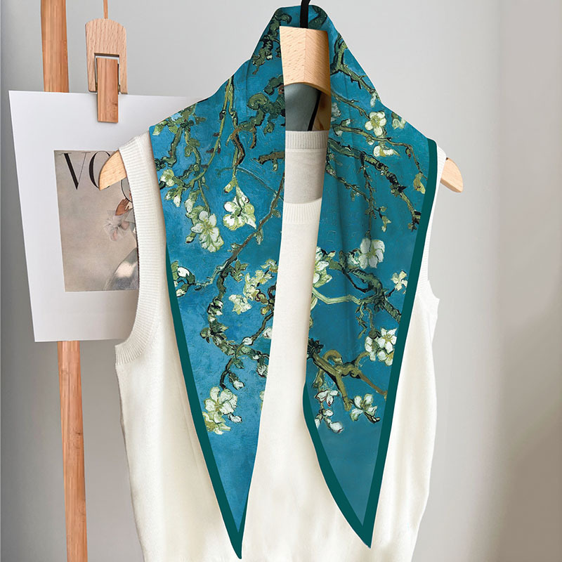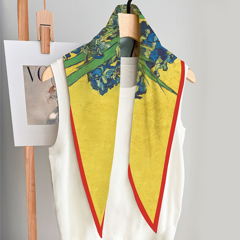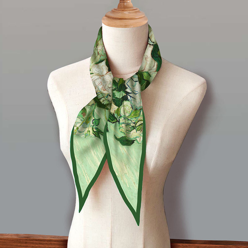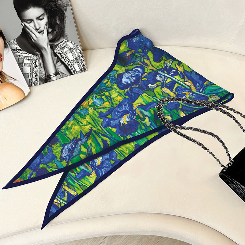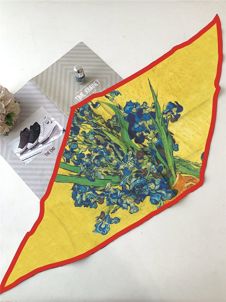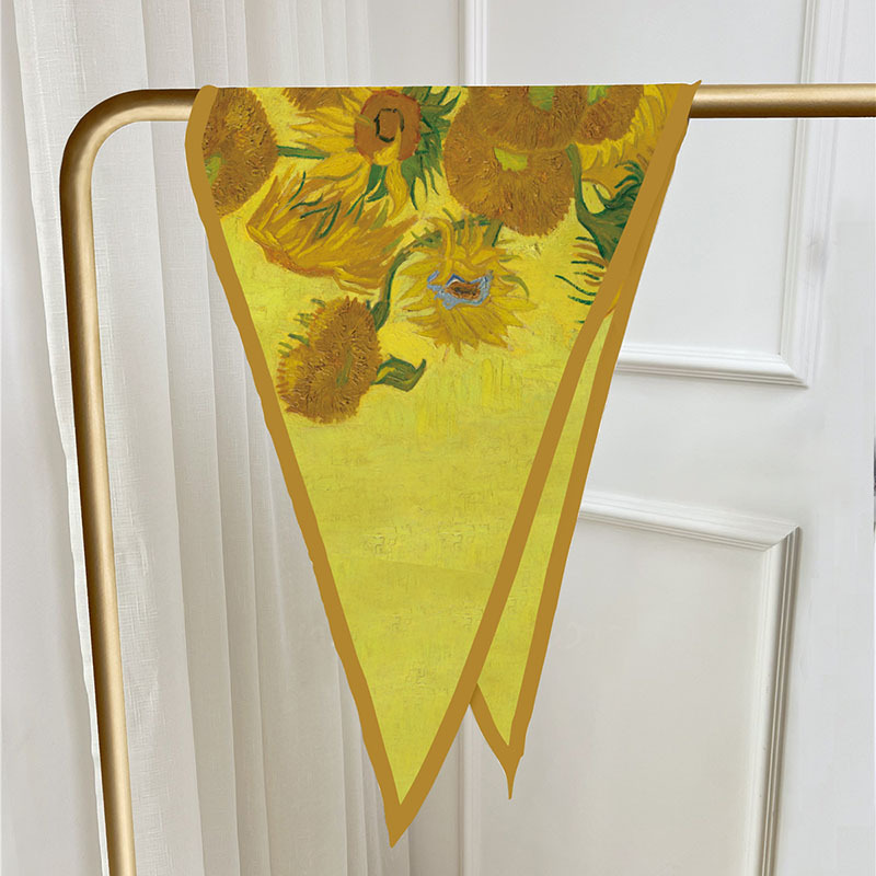 한국 새 반 고흐 유화 장미 여성 트윌 실크 다이아몬드 스카프 봄과 가을 스카프 목도리 삼각형 스카프스토어 가기