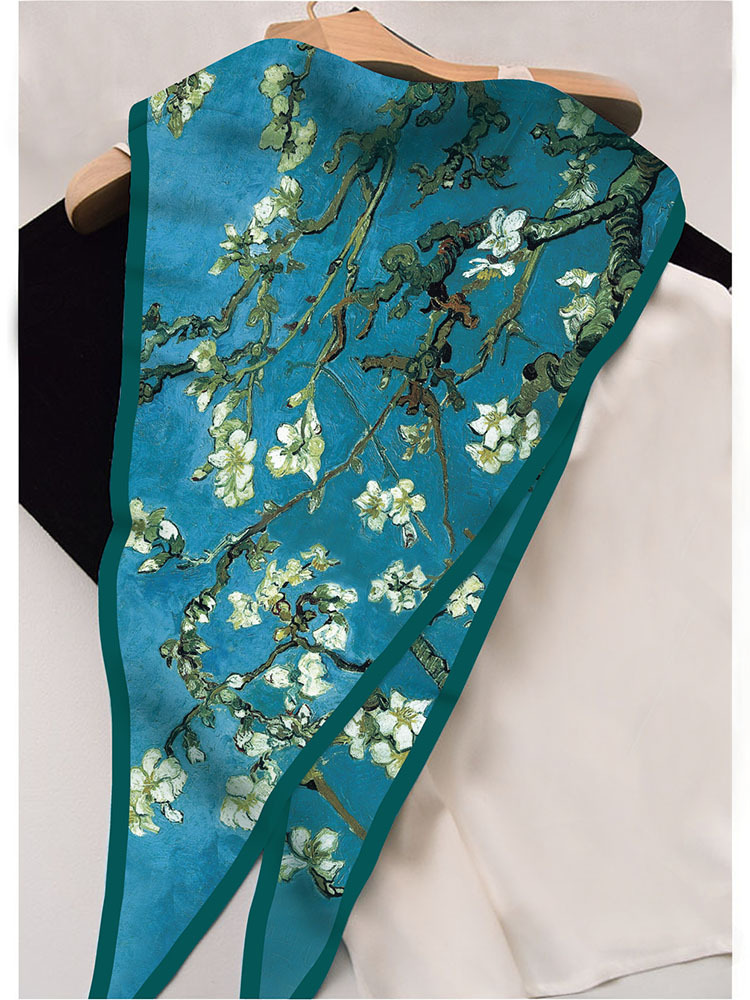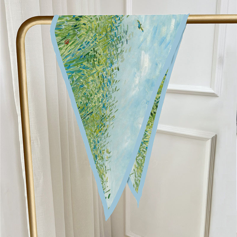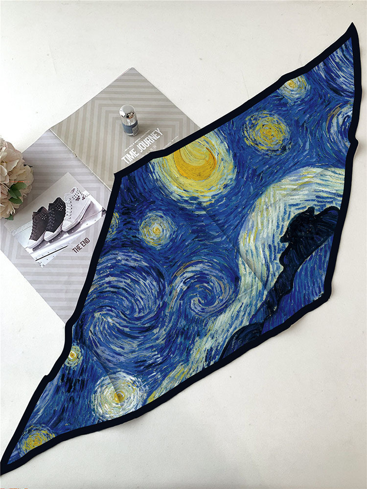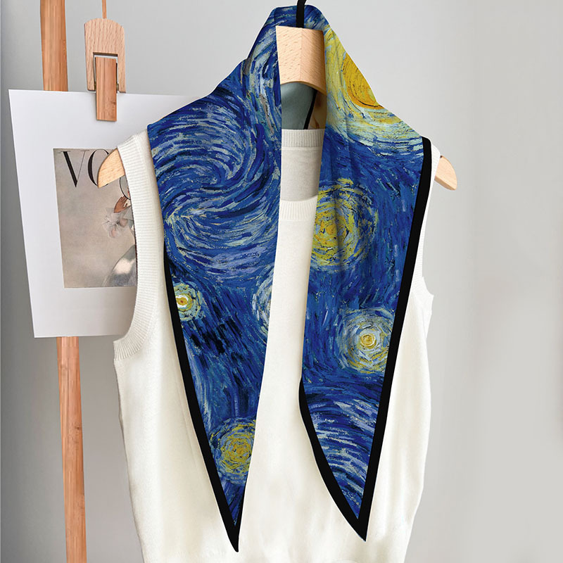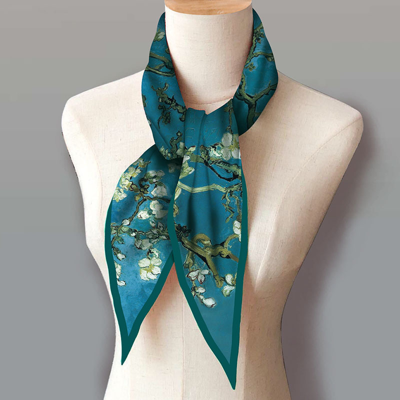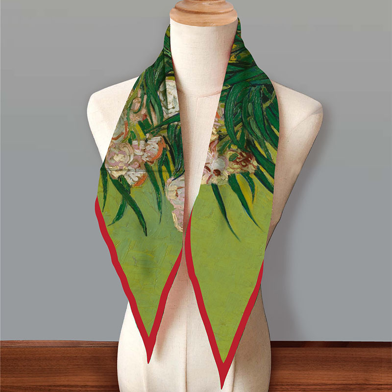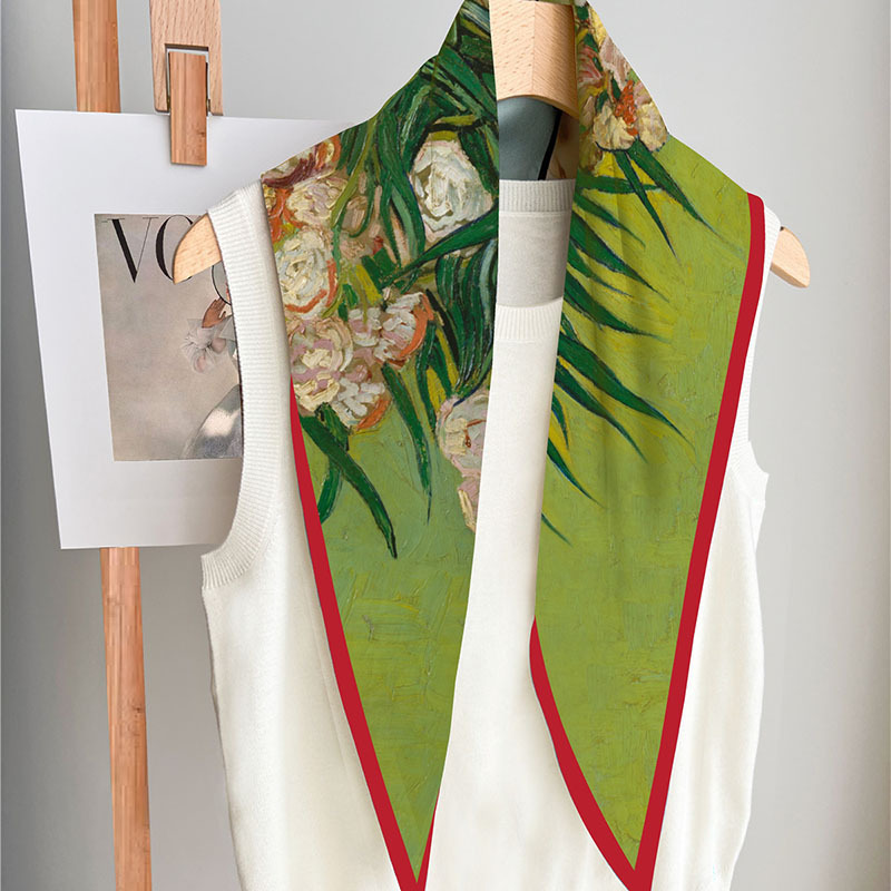 한국 새 반 고흐 유화 장미 여성 트윌 실크 다이아몬드 스카프 봄과 가을 스카프 목도리 삼각형 스카프스토어 가기