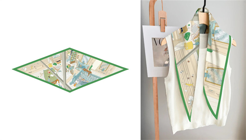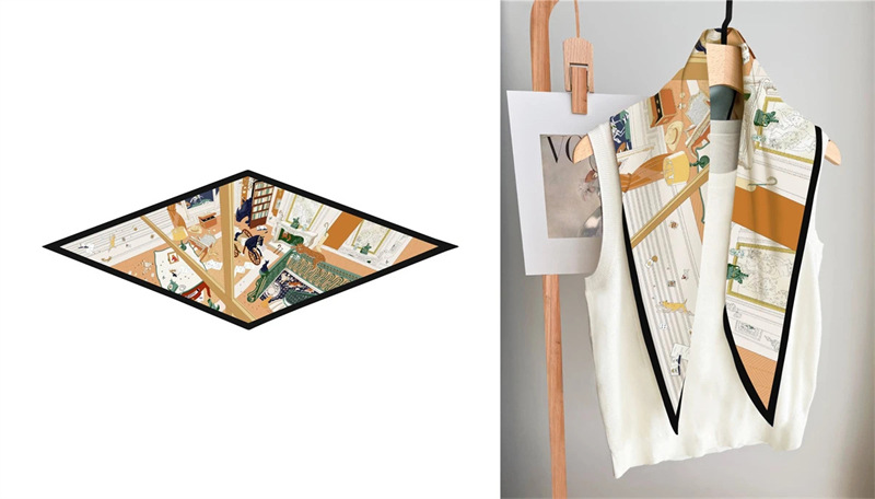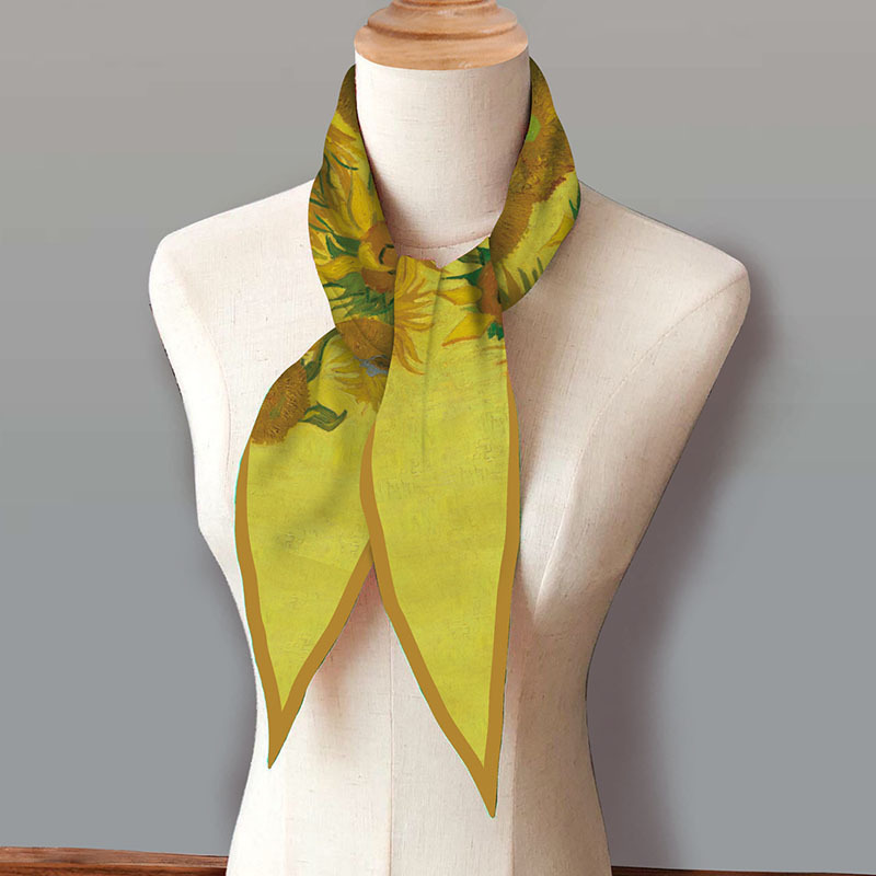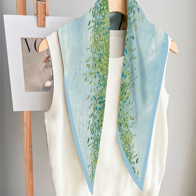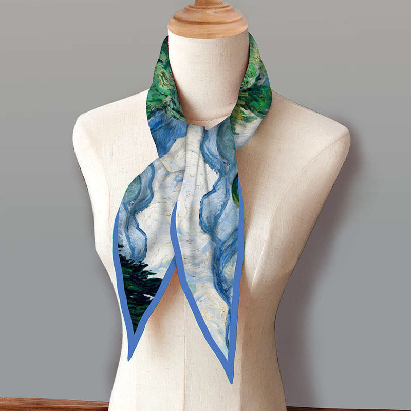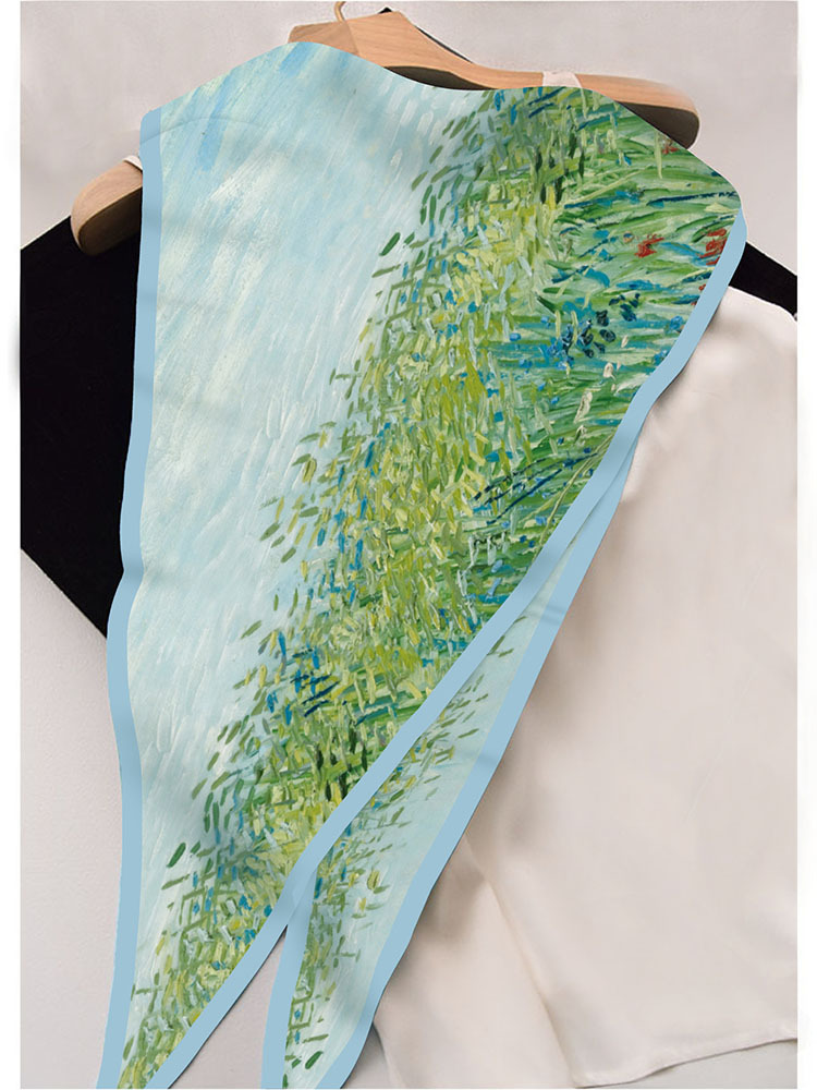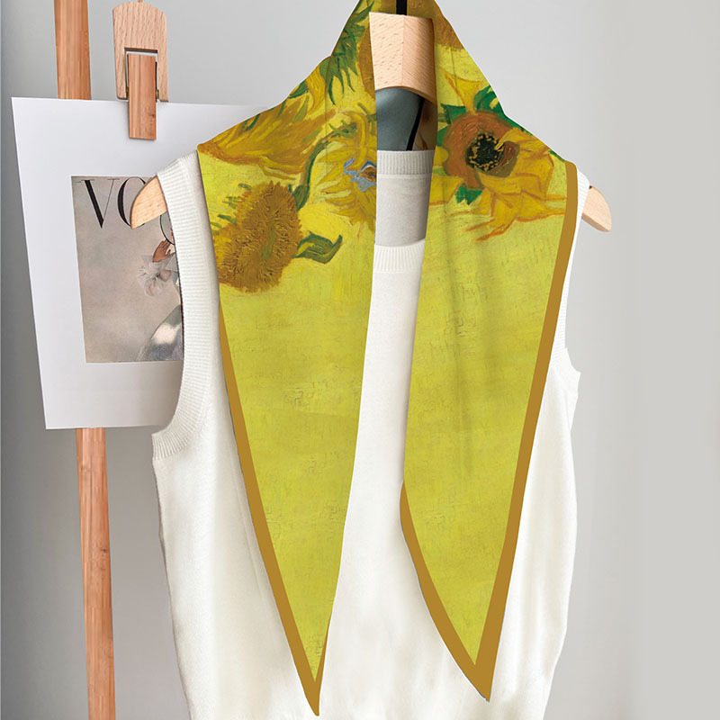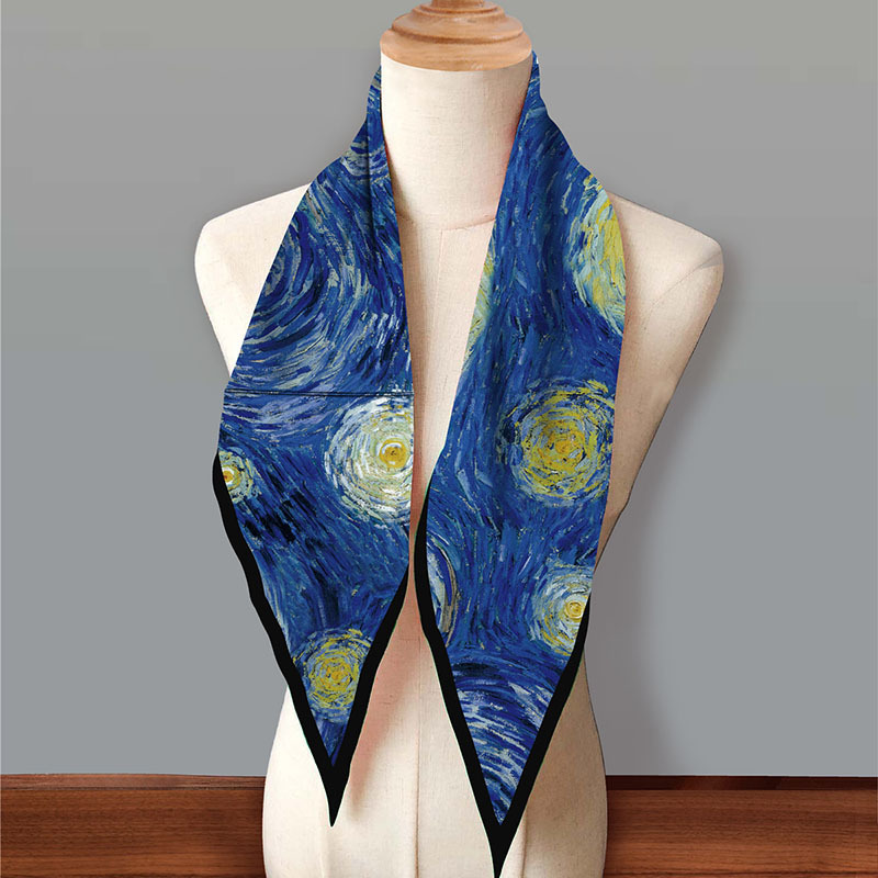 한국 새 반 고흐 유화 장미 여성 트윌 실크 다이아몬드 스카프 봄과 가을 스카프 목도리 삼각형 스카프스토어 가기