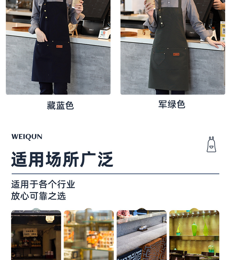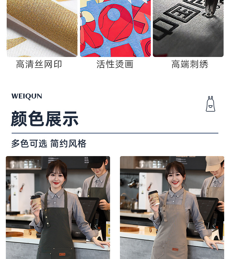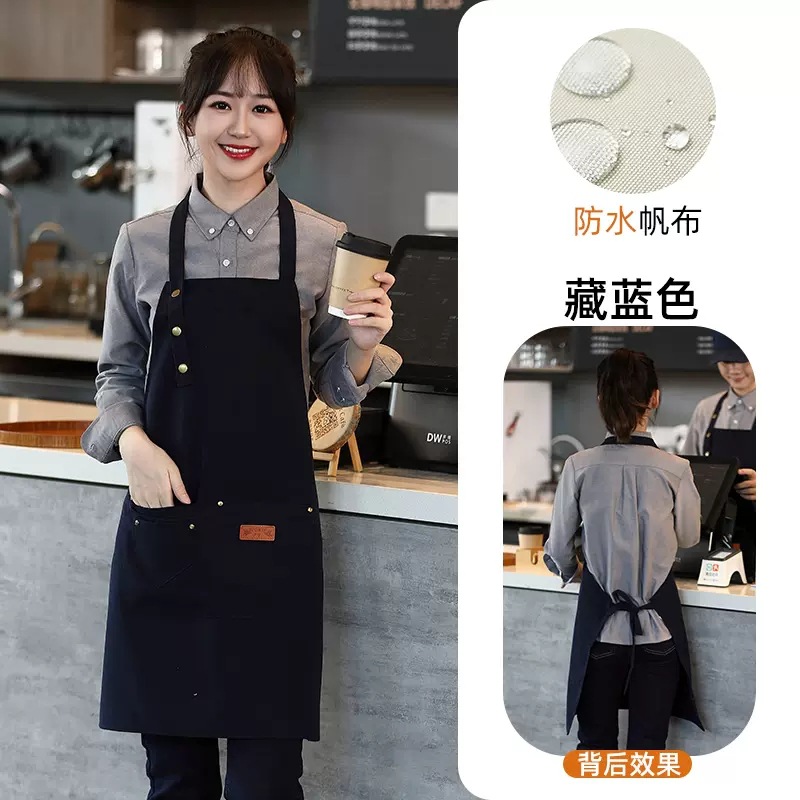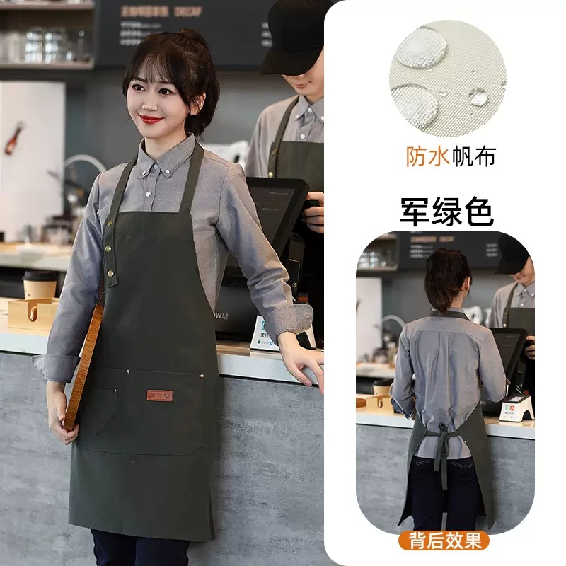 방수 캔버스 앞치마 로고 인쇄 케이터링 전용 바리 스타 우유 차 가게 매니큐어 주방 바지스토어 가기