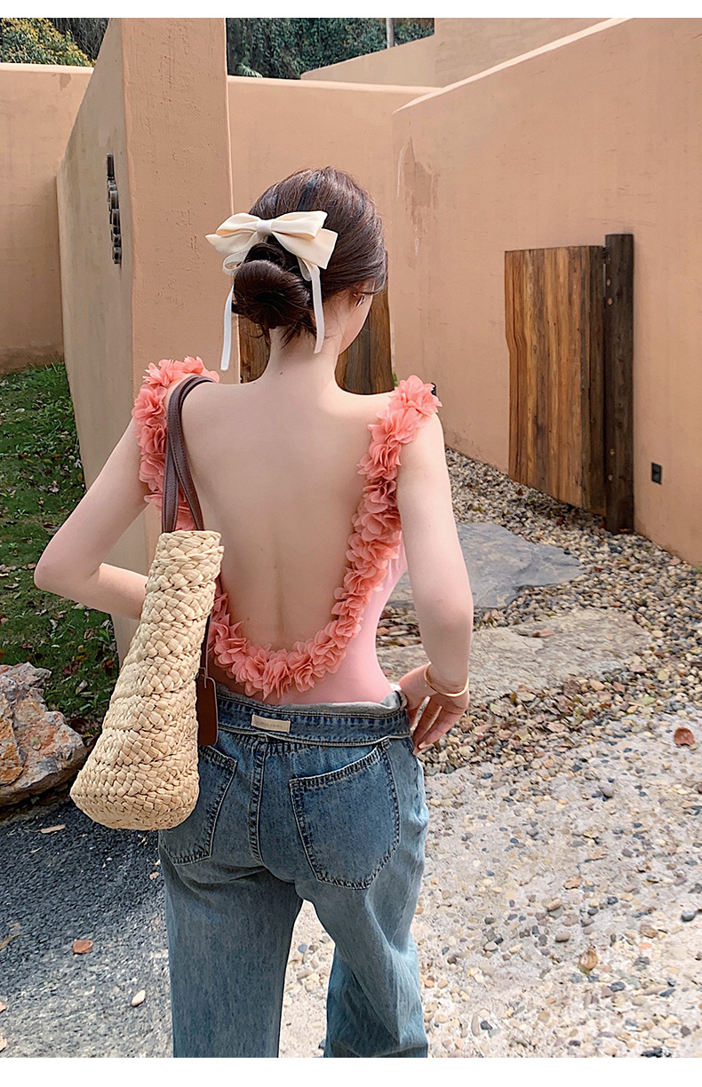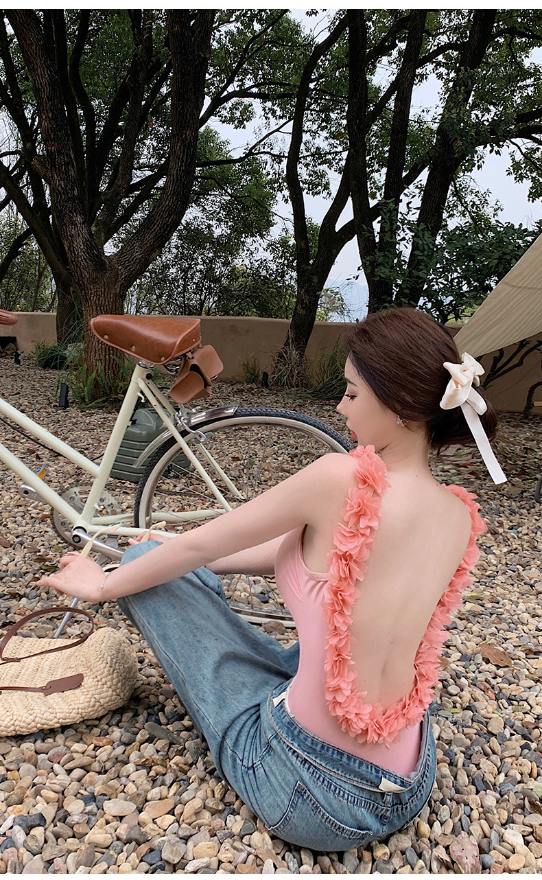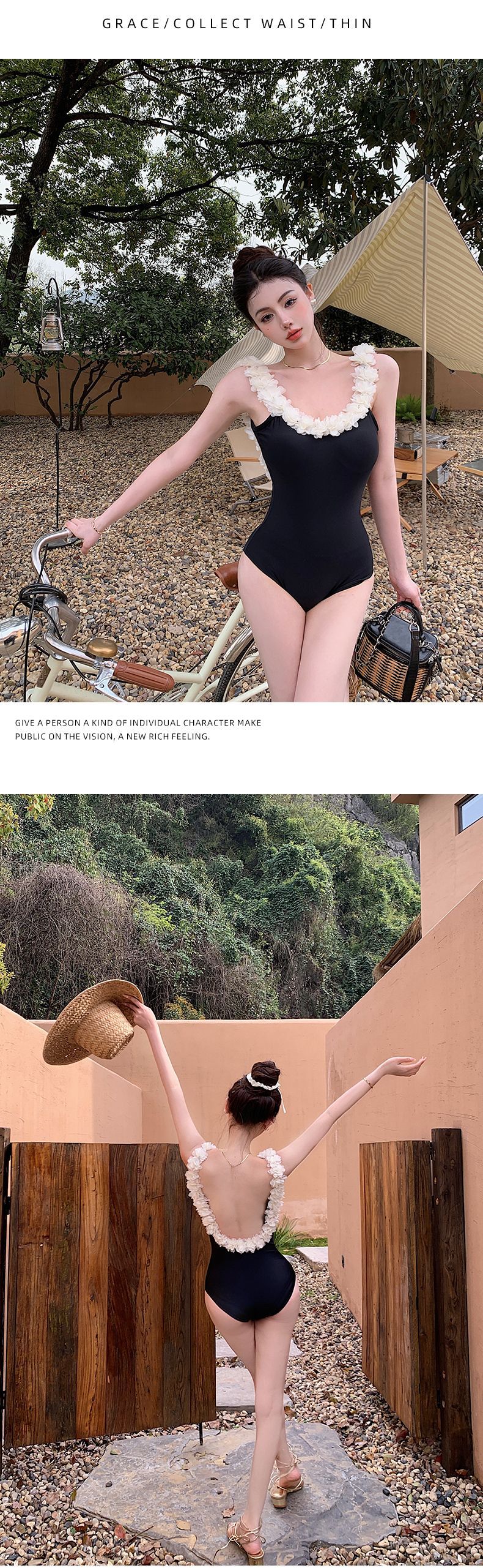 수영복 여성의 새로운 원피스 섹시한 뜨거운 소녀 꽃 스트랩 작은 가슴이 등이없는 순수한 온천 휴가 수영복을 밀어