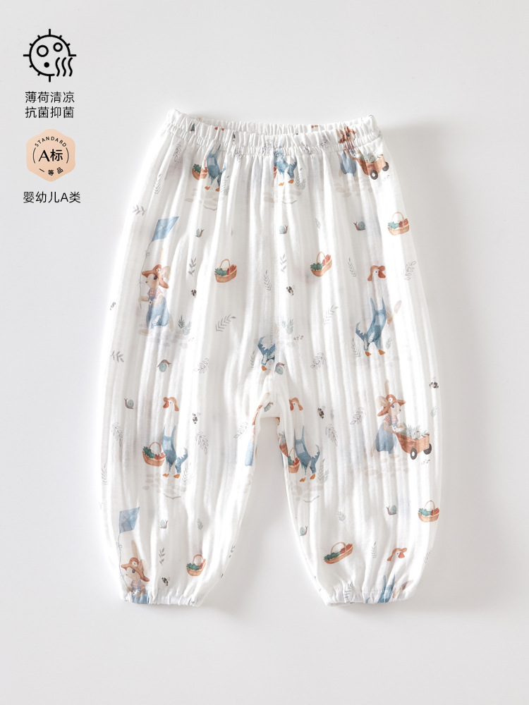 아기 모기 방지 바지 여름 얇은 어린이 바지 남아 발목 바지 여아 블루머 캐주얼 바지 아기 바지
