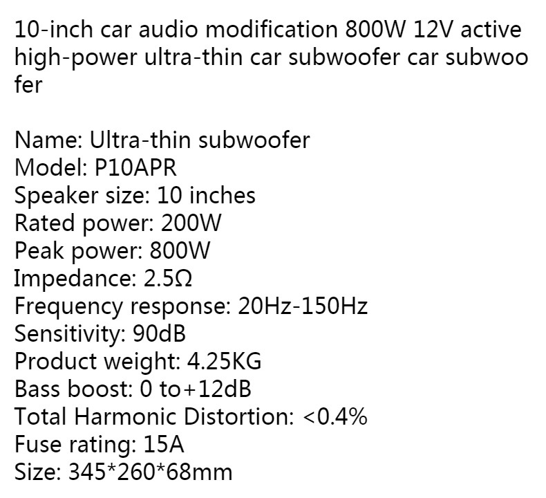 새로운 국경 자동차 초박형 서브 우퍼 10 인치 800W 알루미늄 합금 자동차 서브 우퍼 좌석 바닥 서브 우퍼