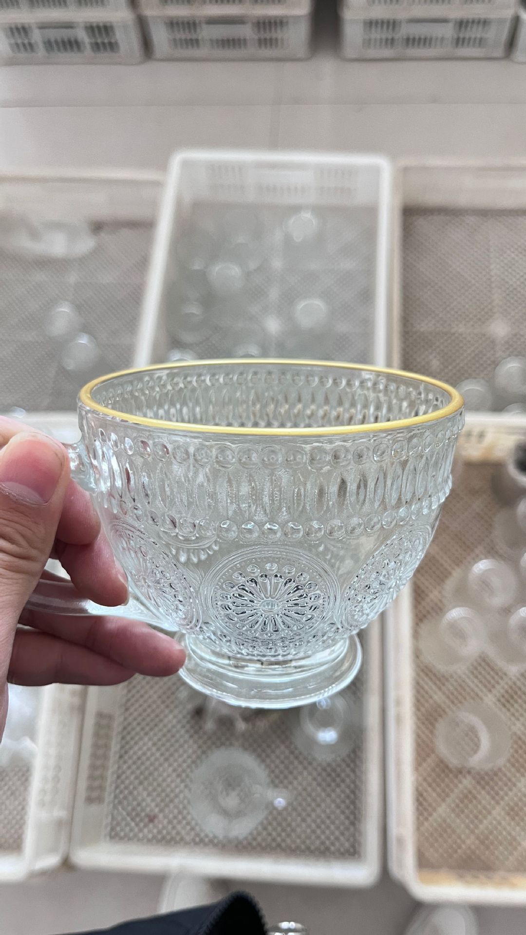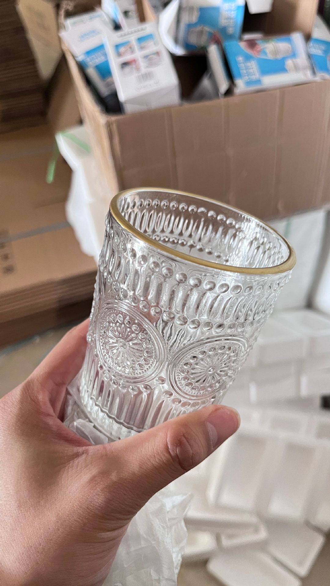 공장 재고 도매 복고풍 해바라기 물 컵 구호 유리 투명 아침 식사 컵 패션 우유