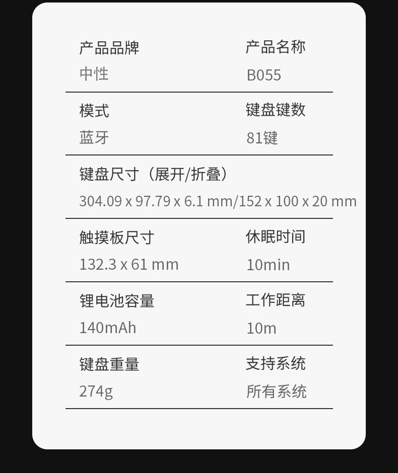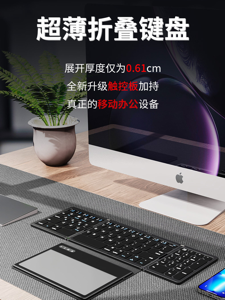 새로운 B055 비즈니스 가죽 대형 터치패드 블루투스 접이식 키보드 충전식 미니 키보드 휴대용 블루투스 키보드스토어 가기