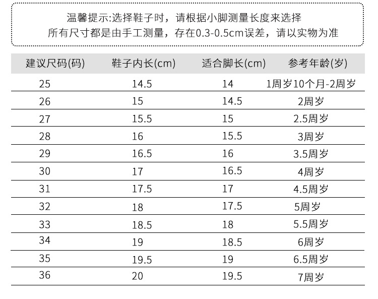 • 봄과 가을: 발 길이 1cm 내부 길이 선택