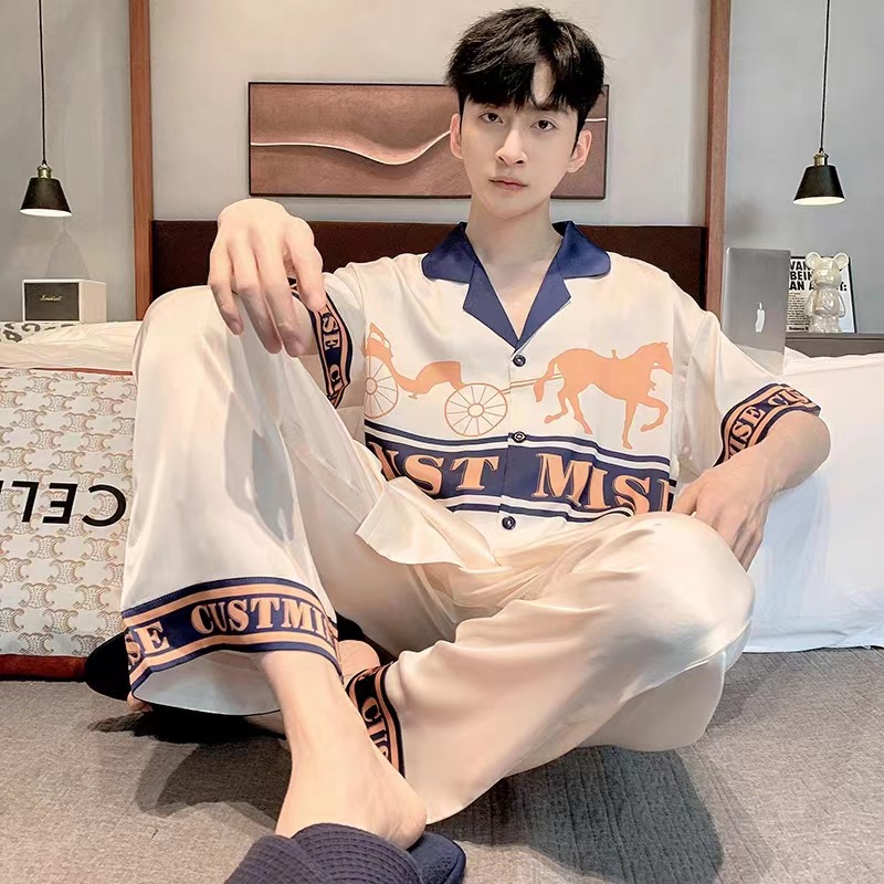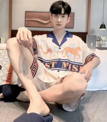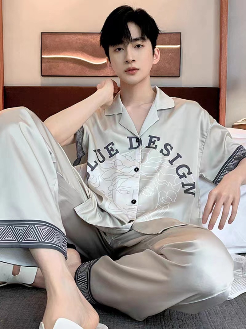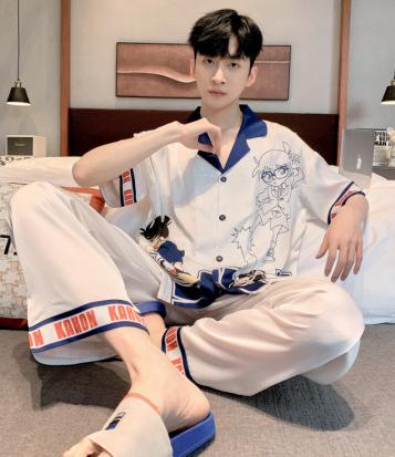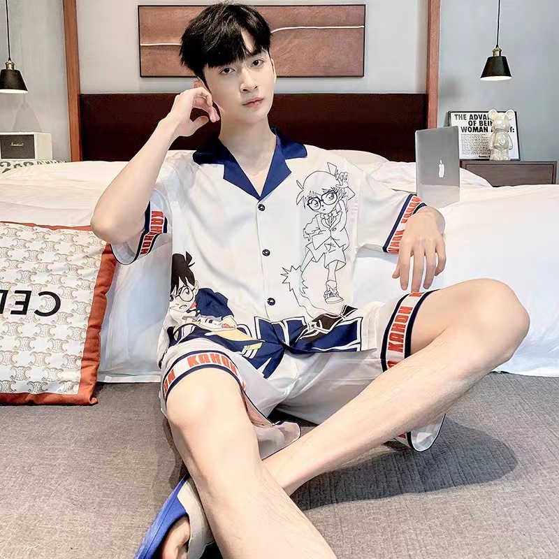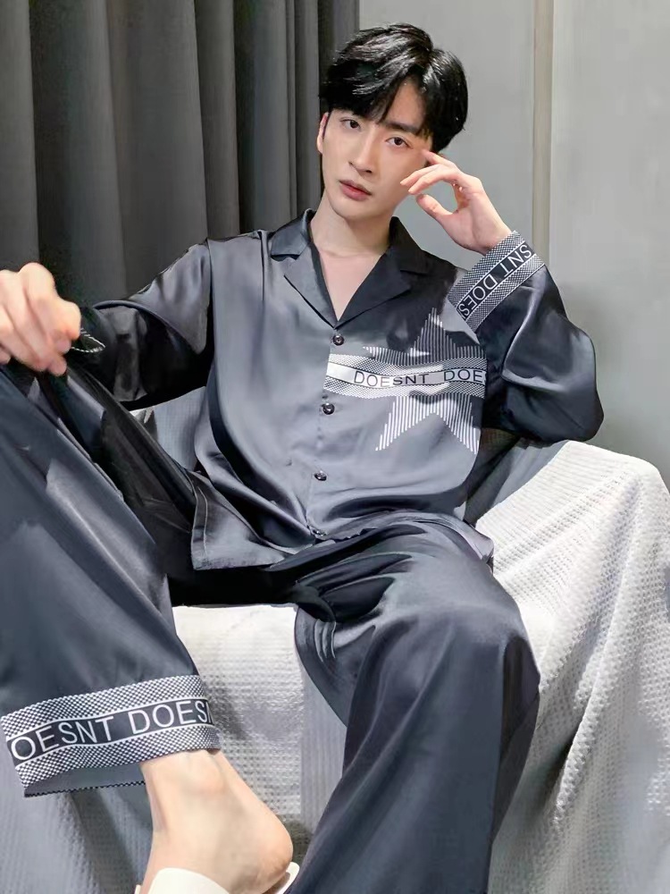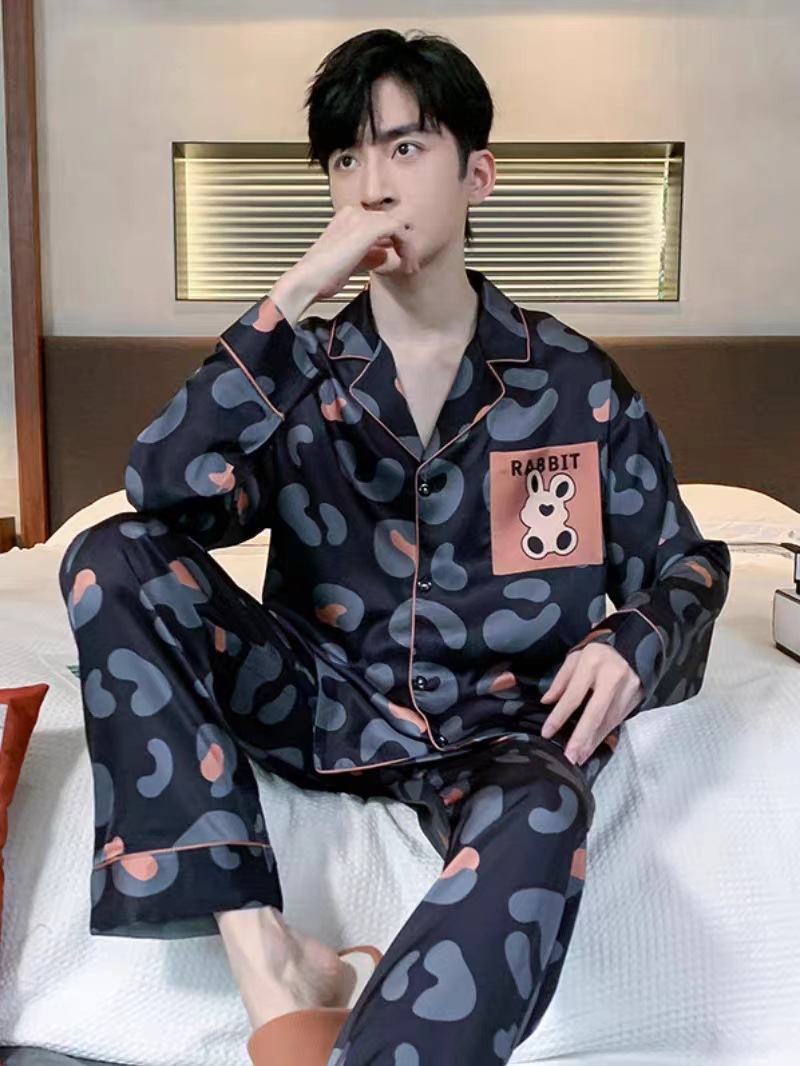 새로운 남자의 잠옷 봄과 여름 긴 소매 얼음 실크 폭발 플러스 사이즈 긴 소매 만화 패션 학생 여름 가정 의류스토어 가기
